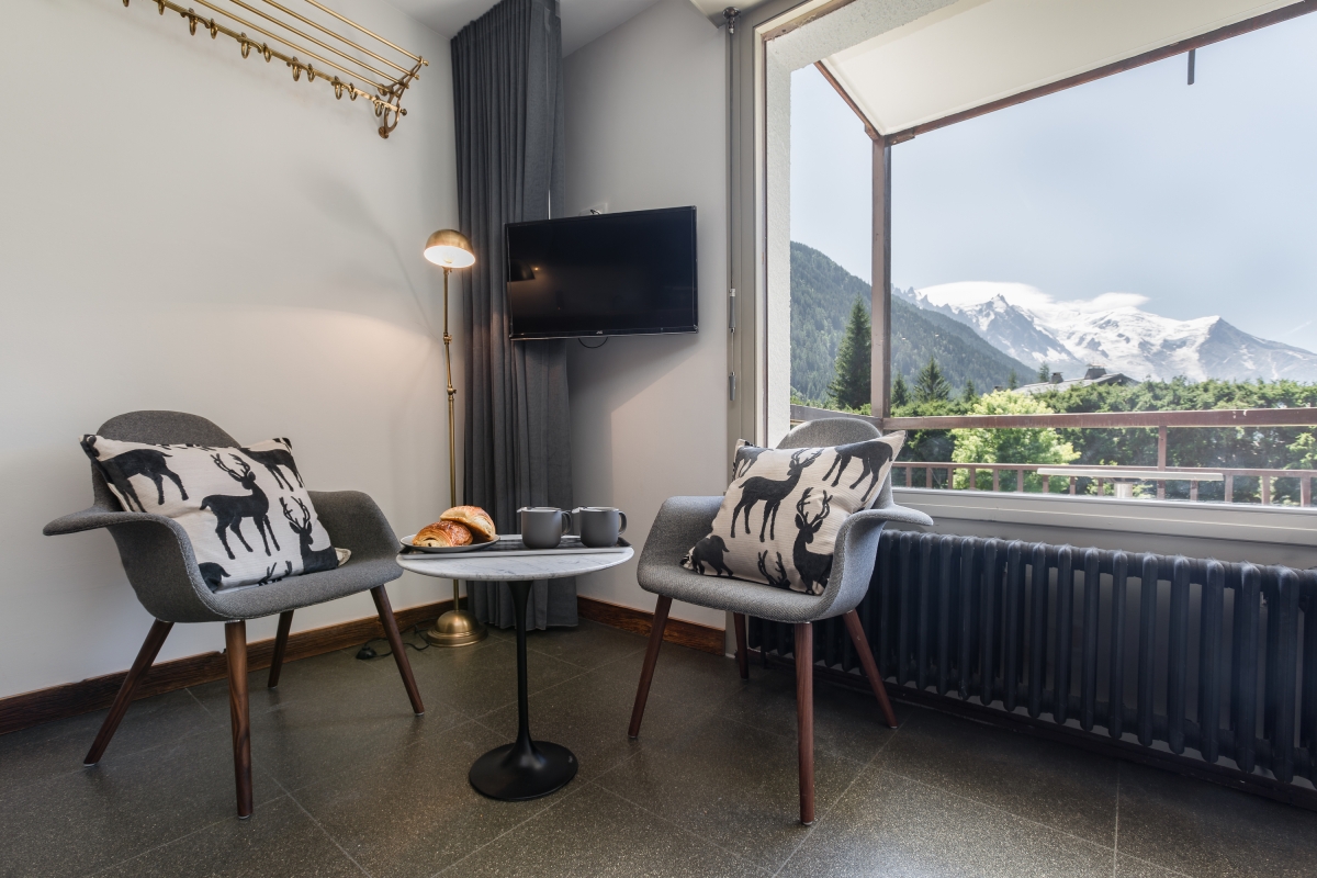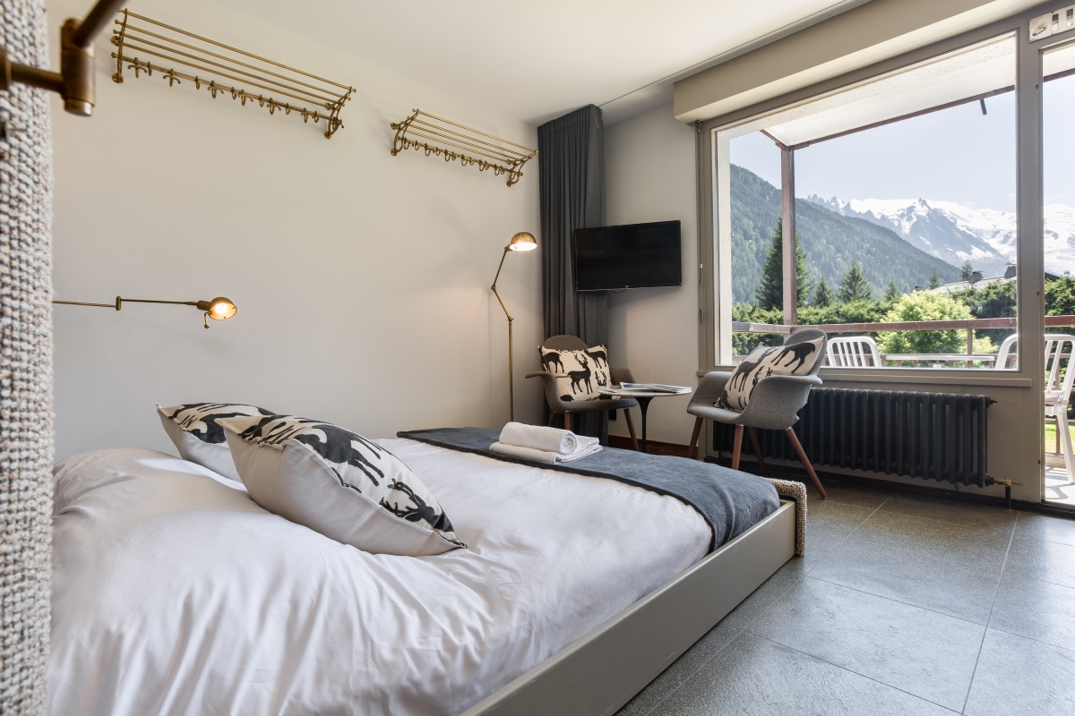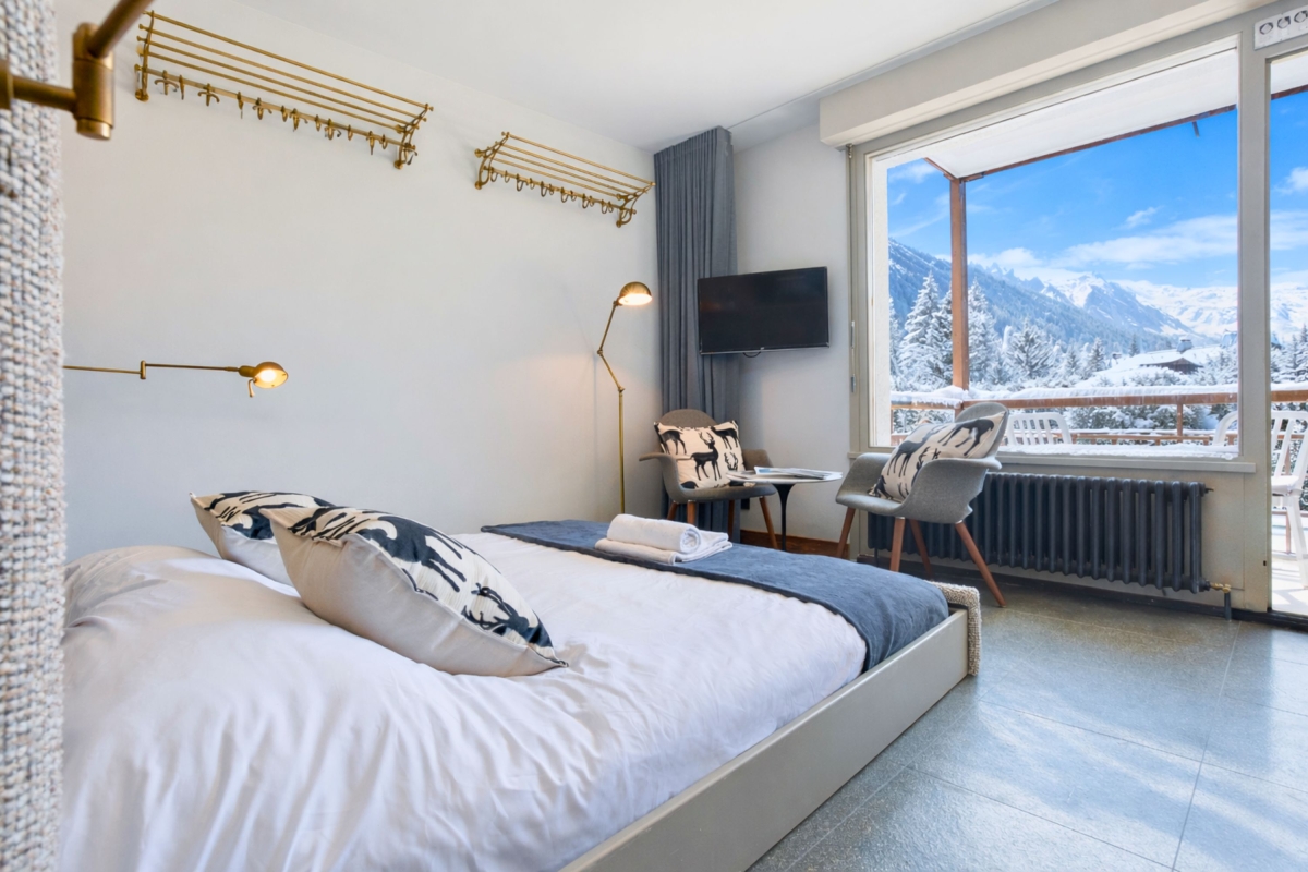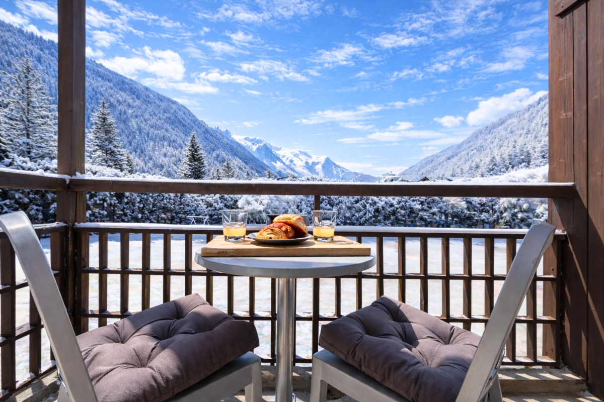 The WiFi-enabled interior benefits from a light and airy modern open plan living space with stylish décor and access to a Mont Blanc-view balcony, with an alfresco dining set. A flat screen TV and double-size pull-out sofa bed are accompanied by a contemporary kitchen diner and a sleek modern bathroom suite, with toasty underfloor heating.