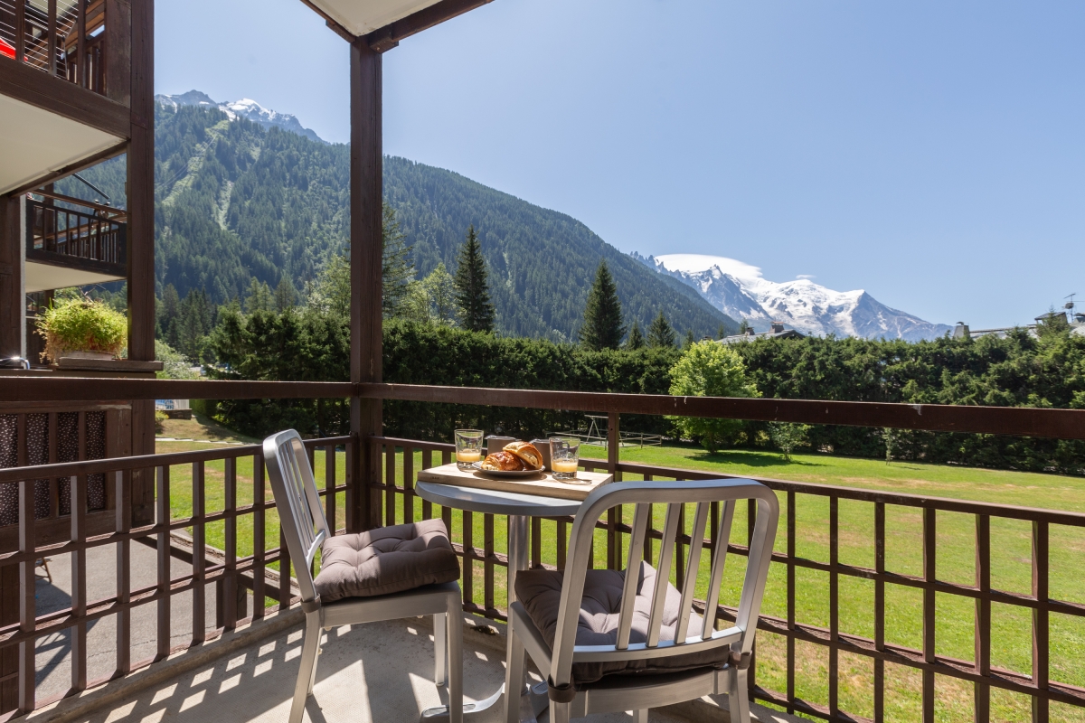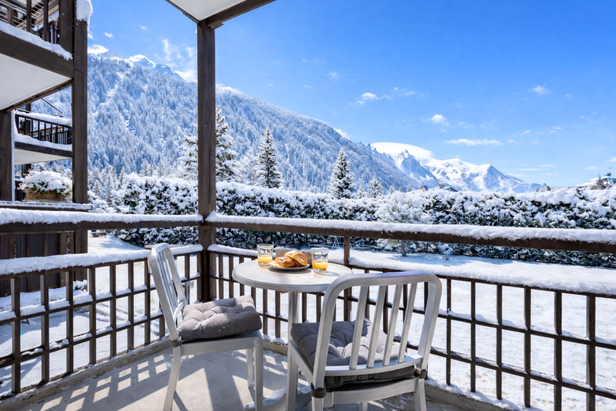 Lap up the ski slopes and Mont Blanc scenery, from this exclusive balcony retreat with on-site pool & parking!