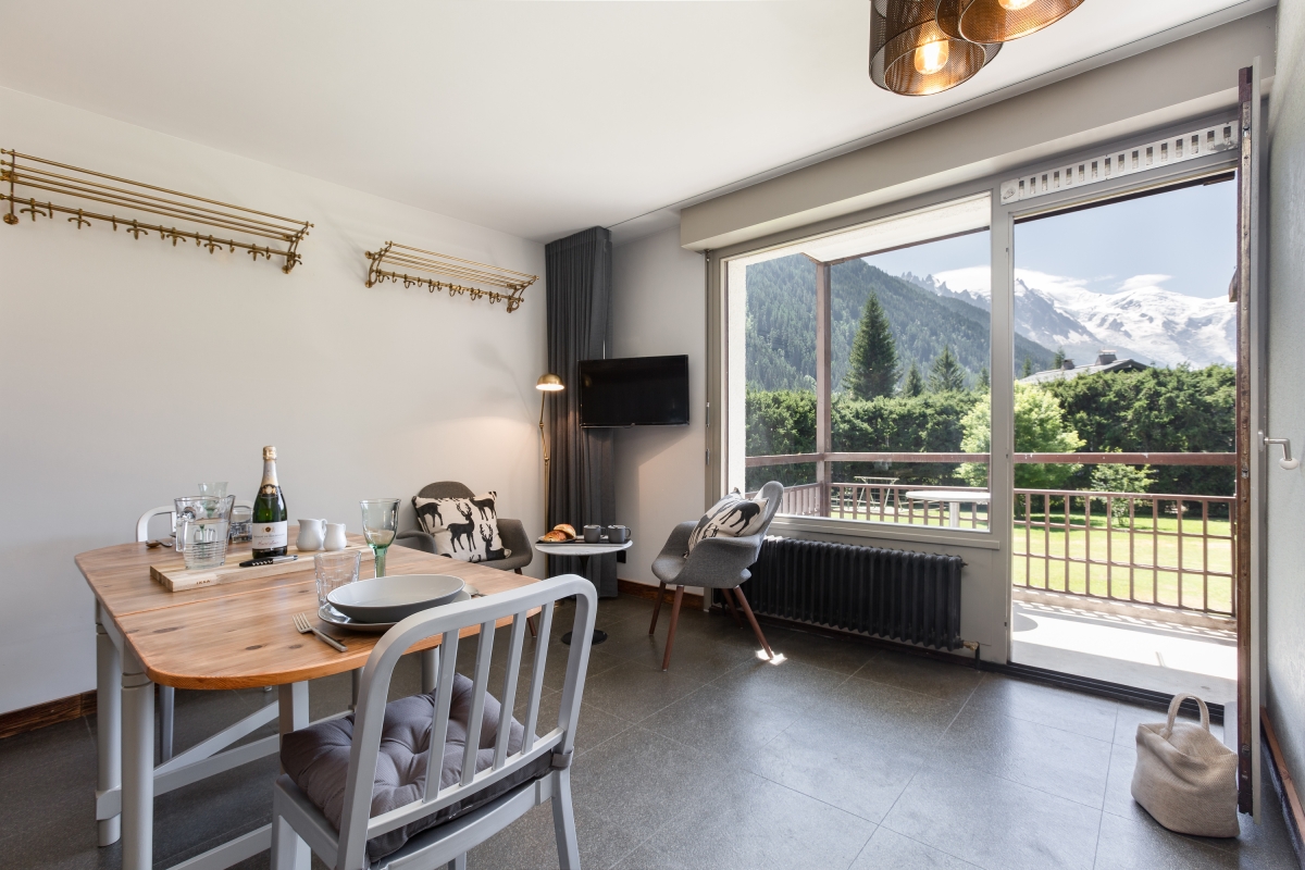 Located close to the amenities of Argentière and 100 metres from Les Grands Montets ski slopes, this recently updated balcony apartment promises a high-quality holiday base for couples in search of an effortless ski break.