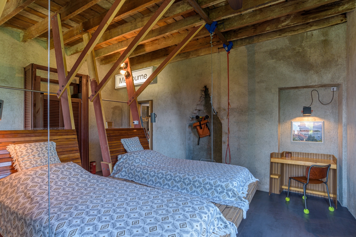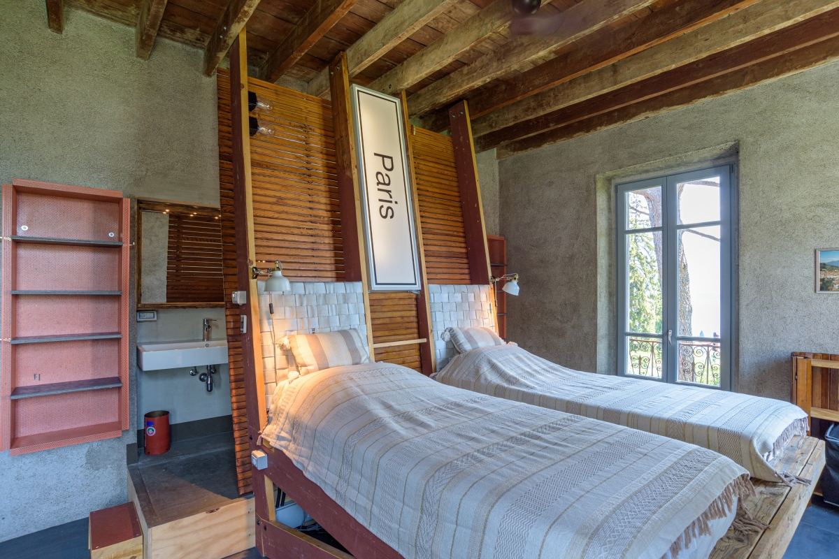Bedroom 6: A modern room furnished with 2 separate single beds & lake view balcony