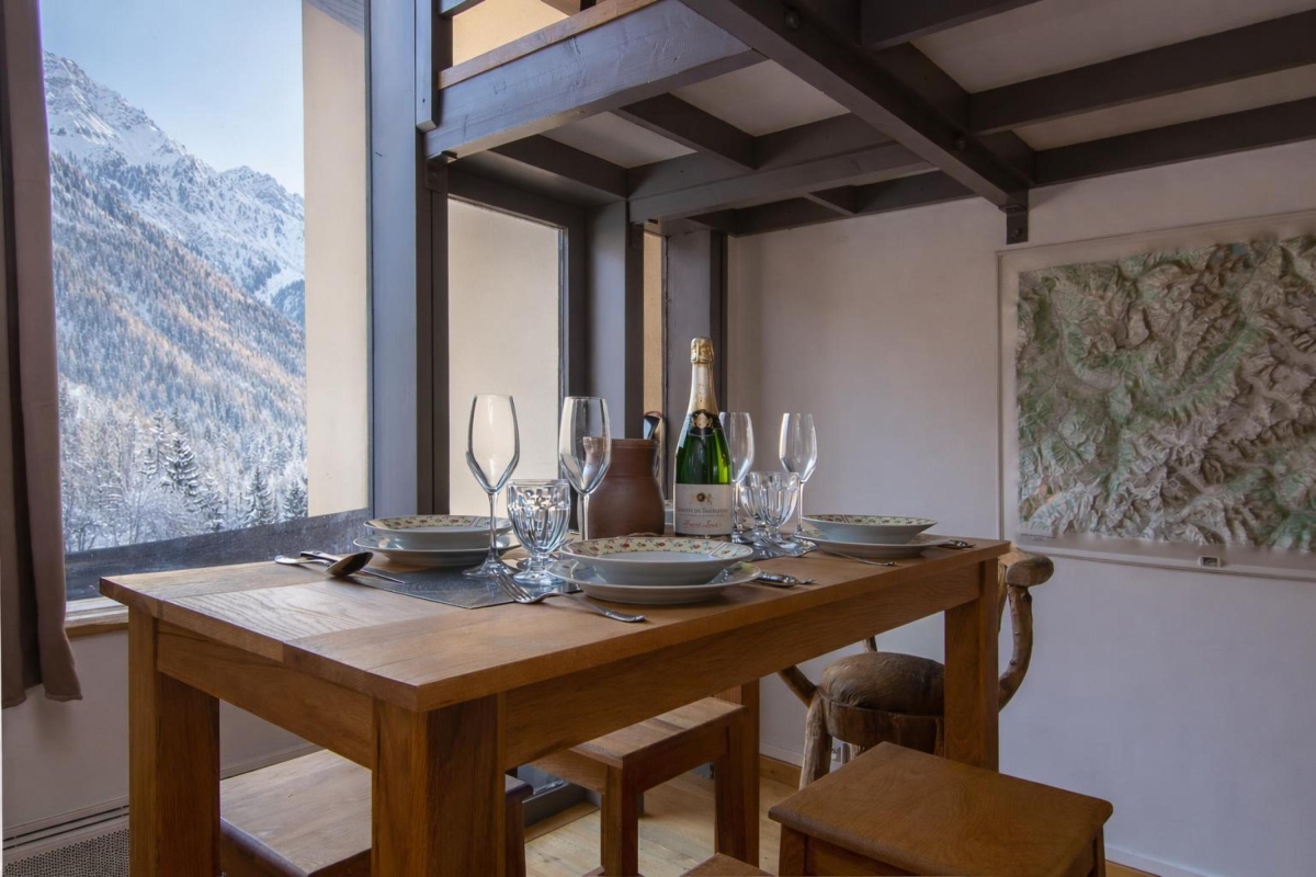 Situated in a natural riverside setting along ‘Chemin sous la Grand’ at the entrance of the village, guests are conveniently placed for reaching a local Pizza restaurant, a launderette and the Happy Holiday Homes office (1-minute walk away), alongside the Les Grands Montets ski lift (2-minute walk away) and the nearby train station.