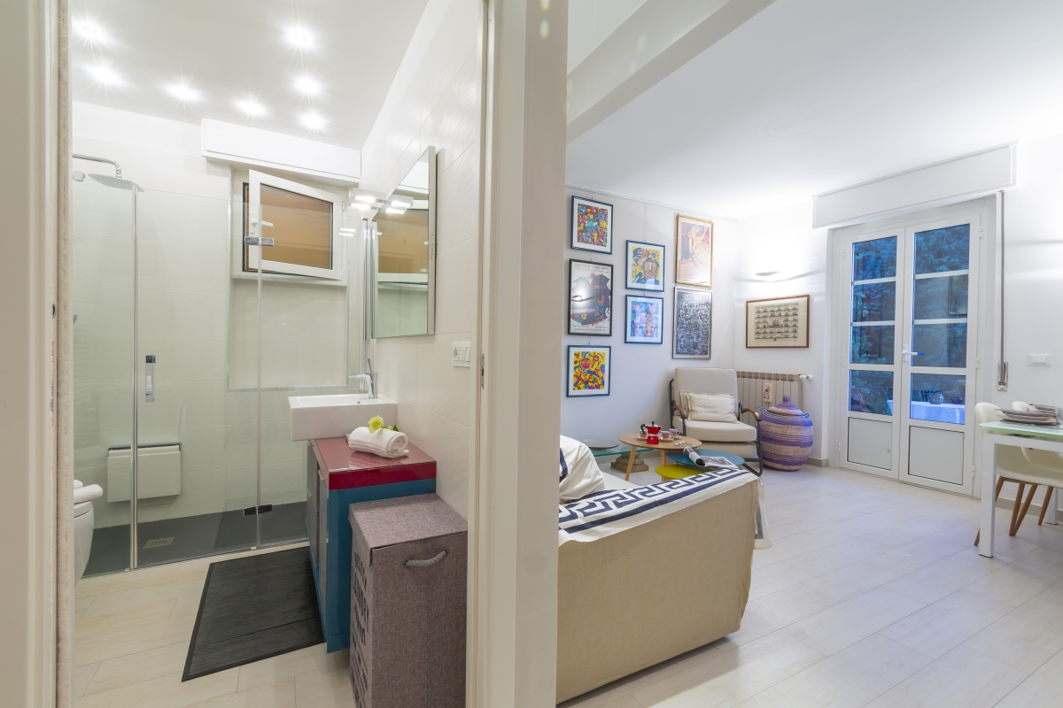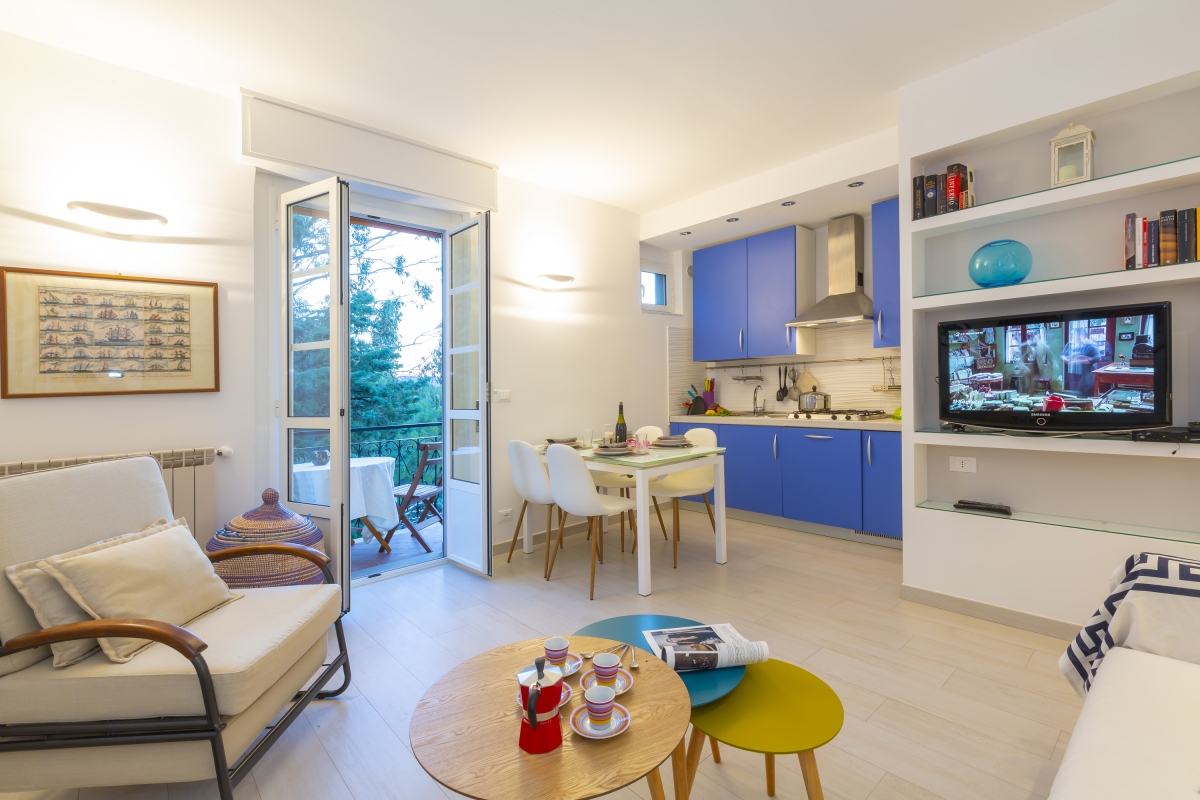 • Moka coffee maker • Central heating • Fan • Washing machine • Clothes horse • Hairdryer • Private balcony • Small pets allowed, upon request (for an extra charge) • Balcony • 24 external steps • short walk from the beach - Free public parking - No wifi - Freezer