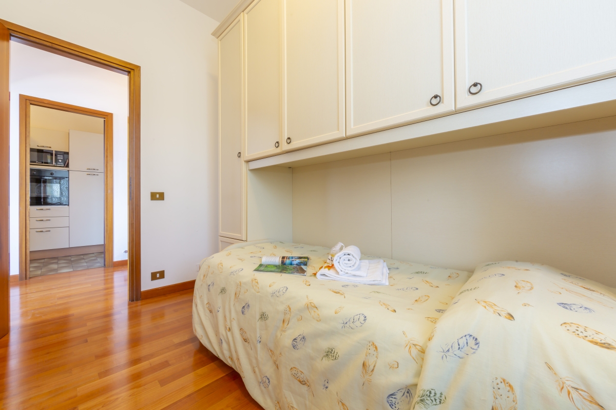 A spacious master bedroom with double king-size bed and large fitted wardrobe is complemented by a double sofa bed to the living room and a 2nd bedroom, which is furnished with a single bed and pull out single. A spacious family bathroom with tub and shower is located at the end of the corridor. Outside, the private lake view terrace is furnished with an alfresco dining set and compact sofa for 2. The panoramic lake views will easily tempt guests to while away an afternoon or evening there. The 1st floor apartment also benefits from lift access.
