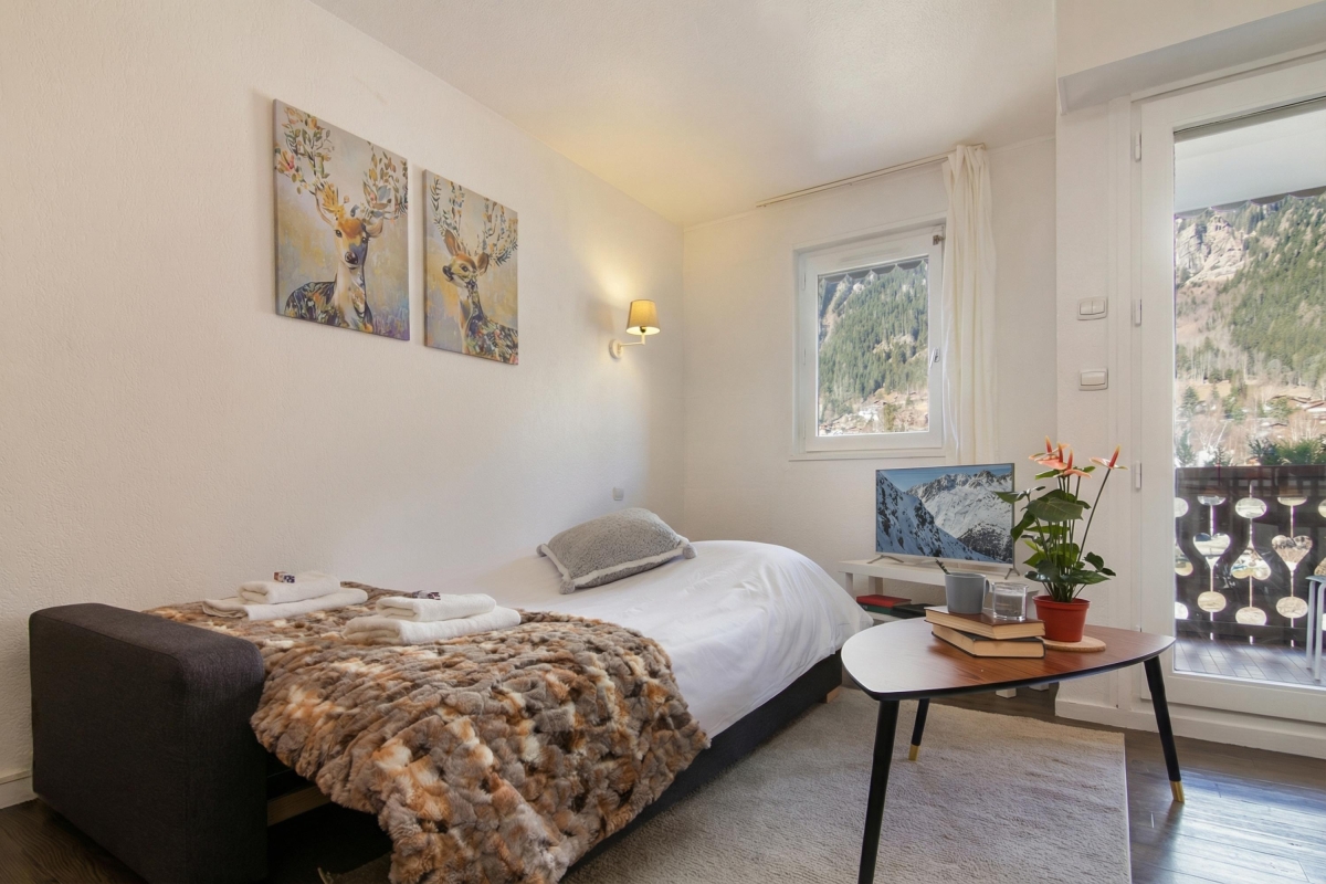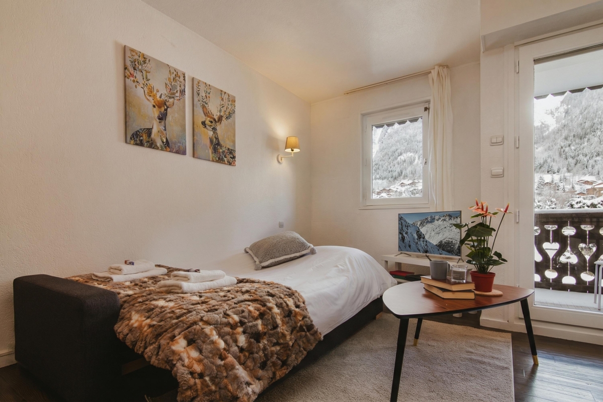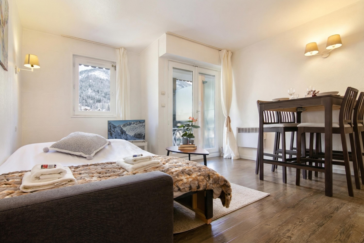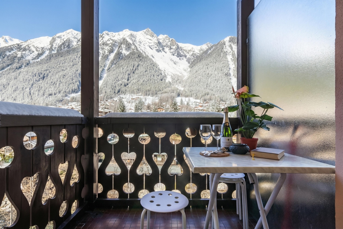 Easily reach the ski lifts and resort amenities of Chamonix on foot, from this stylish family studio with balcony!