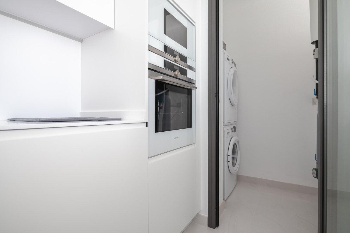 Inside the newly built complex, the beautiful air-conditioned apartment boasts a light and spacious layout, with a contemporary open plan living room with sofa, flat-screen smart TV and free WiFi featuring alongside an equally stylish dining area and integrated luxury kitchen. The glazed double-aspect doors lead out onto a fantastic private terrace, with the welcome outdoor space providing a heavenly summertime flow. Accompanying the splendid entertaining areas are three spacious double bedrooms (one of which offers an en-suite shower room), complemented by a sleek family bathroom and private laundry facilities.
