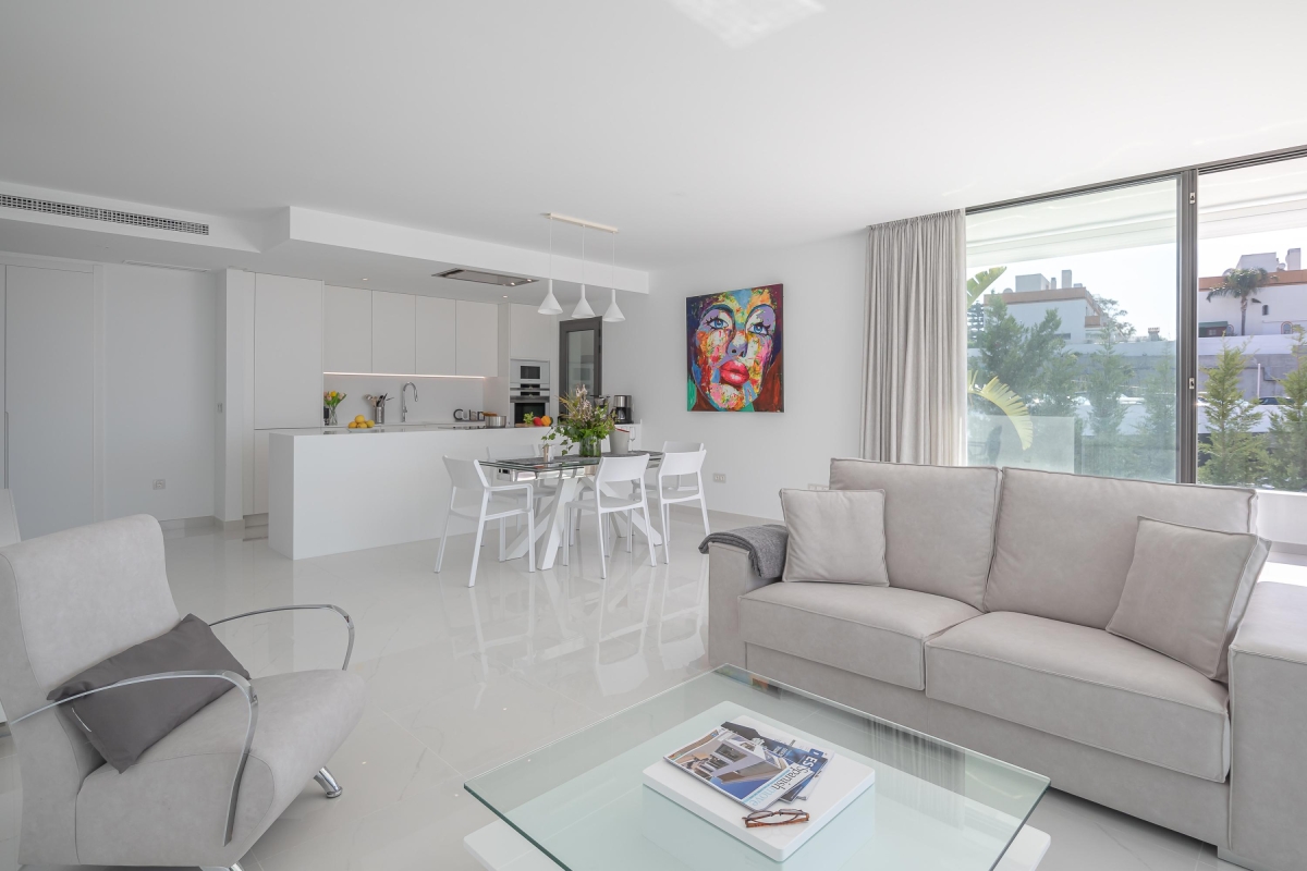 Perfectly positioned for reaching the fairways of the Atalaya Golf & Country club, this luxury new 3-bedroom apartment with a private terrace and pool access paints the scene for a carefree golfing holiday with family and friends.
