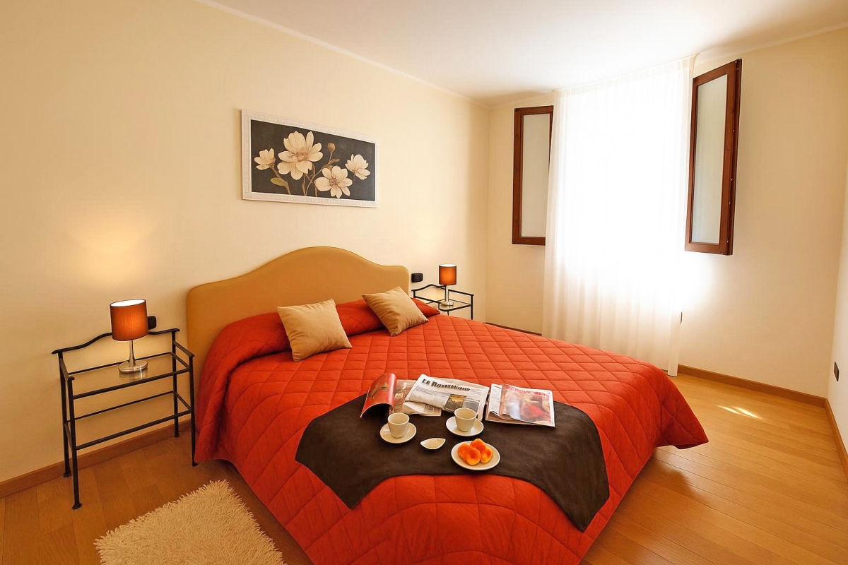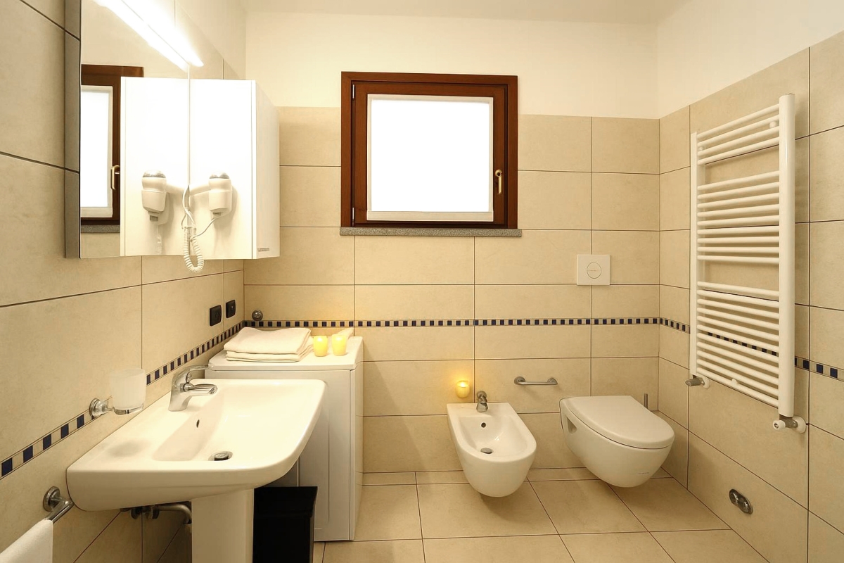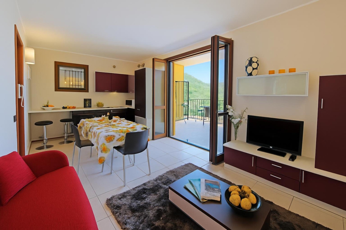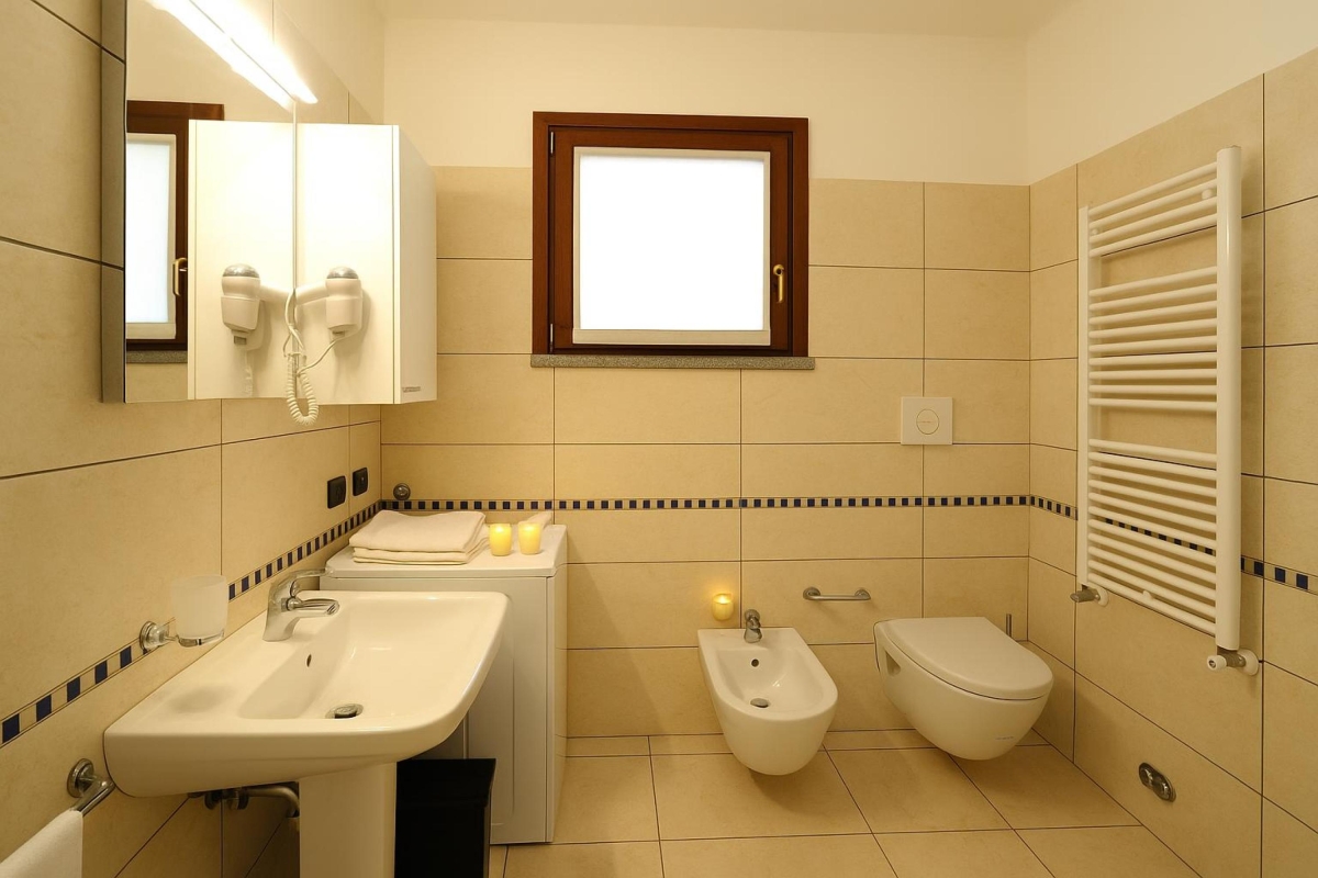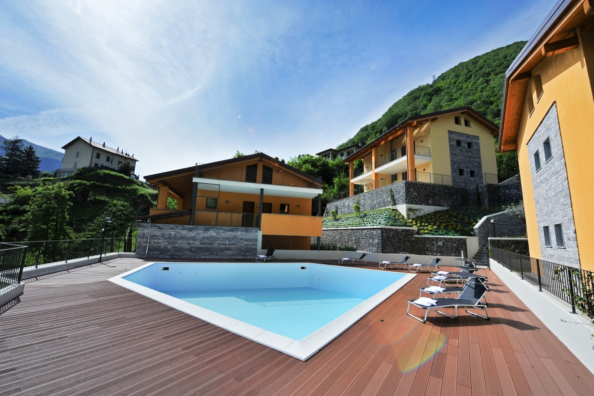 From the living room guests can also enjoy the sunny direct views over the small and exclusive residence with its swimming pool, as well as over the mountainside and of the lake itself. Glass doors slide open to lead guests onto the fabulous private balcony terrace where alfresco dining can be enjoyed!