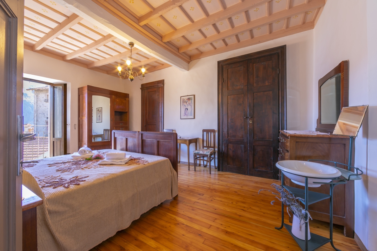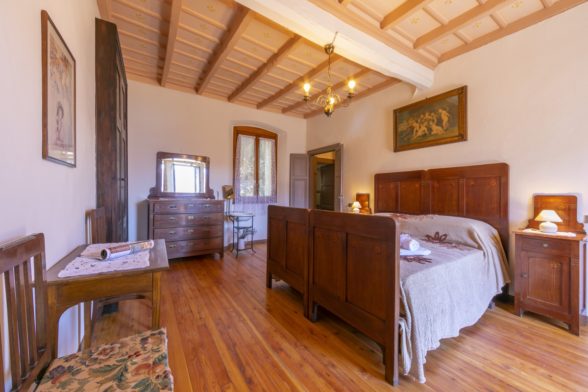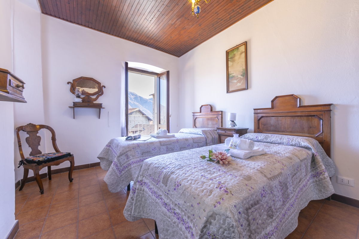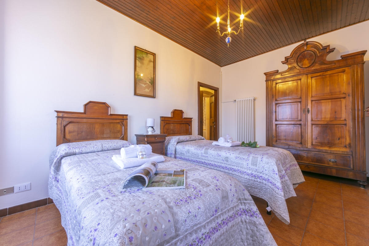 Bedroom 2: Another beautiful bedroom, with 2 single beds and a striking antique wardrobe. This room also has its own balcony with lake views.