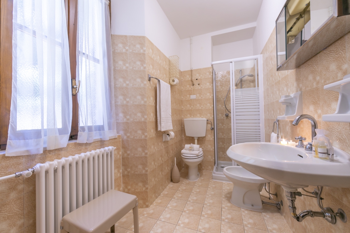 Bathroom 1: On the first floor, this bright bathroom has a glass shower, basin, bidet and WC