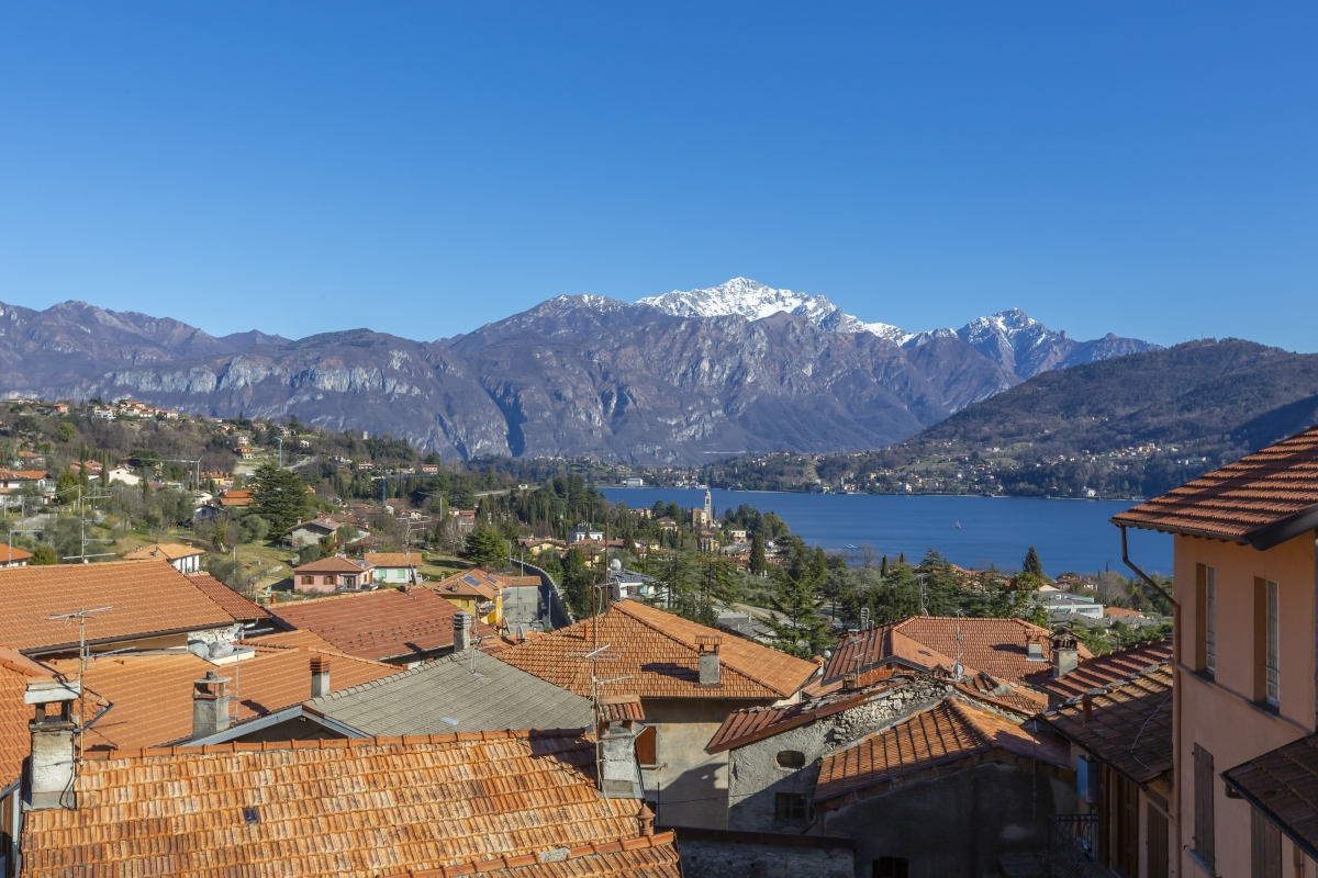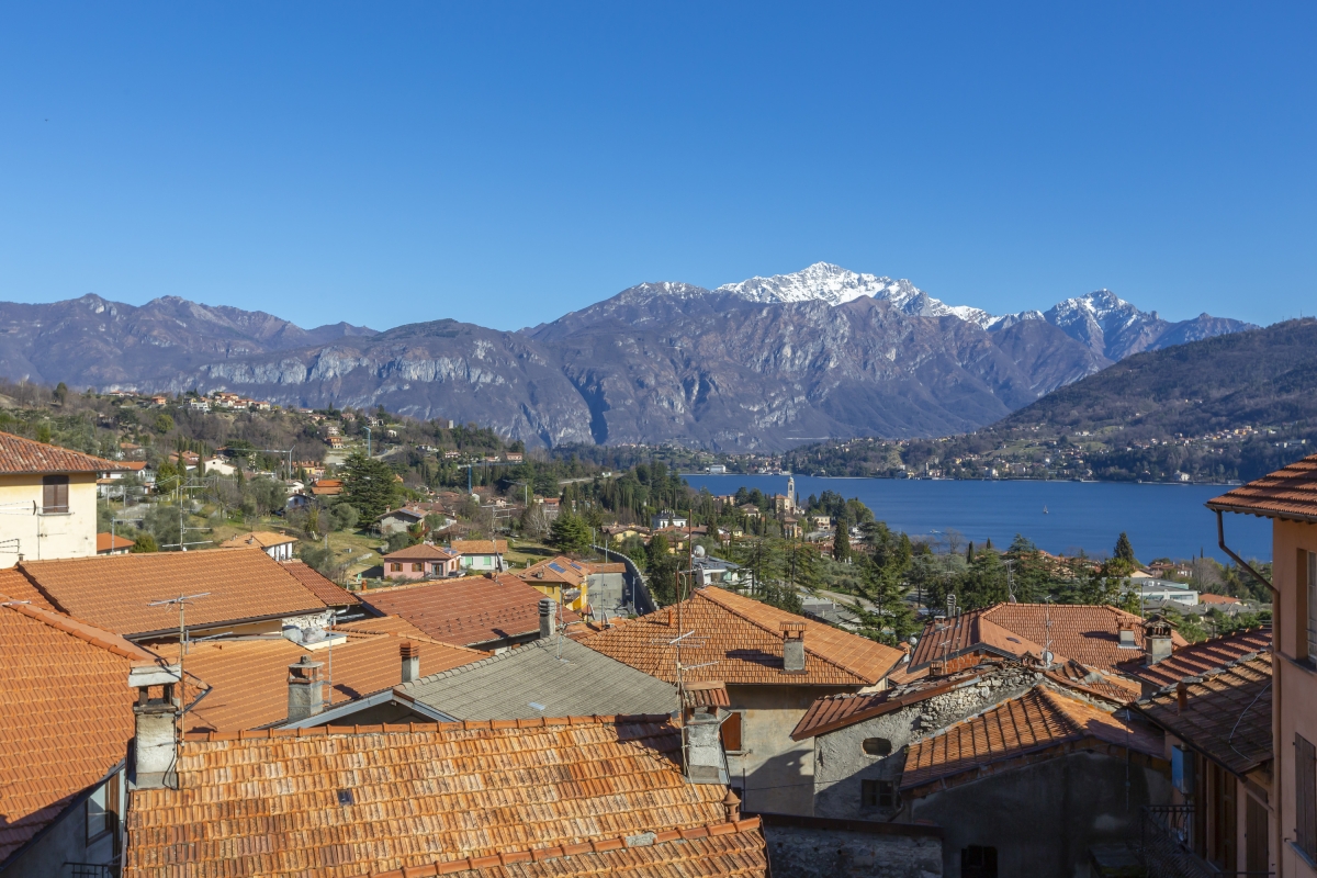 The apartment is in a quiet, residential part of the village of Azzano, near Mezzegra, just a 10-minute walk from Lake Como. On the western shores of the lake, the property offers stunning views across Como and the mountains.