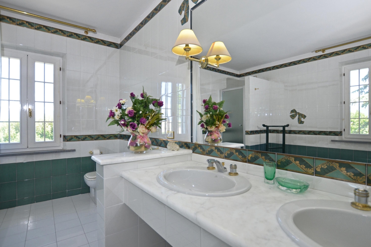 Bathroom 1: The grand bathroom has a bathtub, a pair of washbasins, a bidet and a WC.
