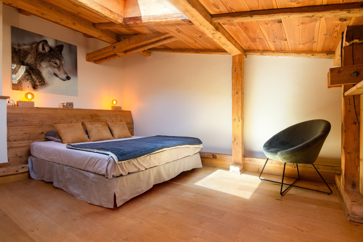 Bedroom 1: The spacious bedroom has a double bed under the skylight, an armchair and an attached bathroom.