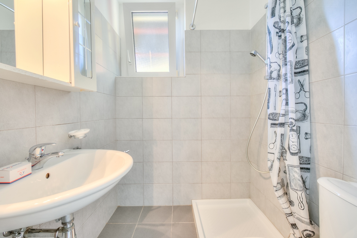 Bathroom 1: The modern bathroom has a shower, a washbasin and a WC