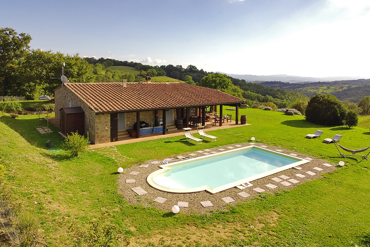 Overlooking the panoramic view of the surrounding hills and the sea on clear days, this thoughtfully-restored holiday home (built in 2,500 square meters within a 30,000 square meter property) provides the perfect opportunity to appreciate nature, enjoy the local cuisine and wine called Morellino di Scansano and be lost in the beauty of the landscape.