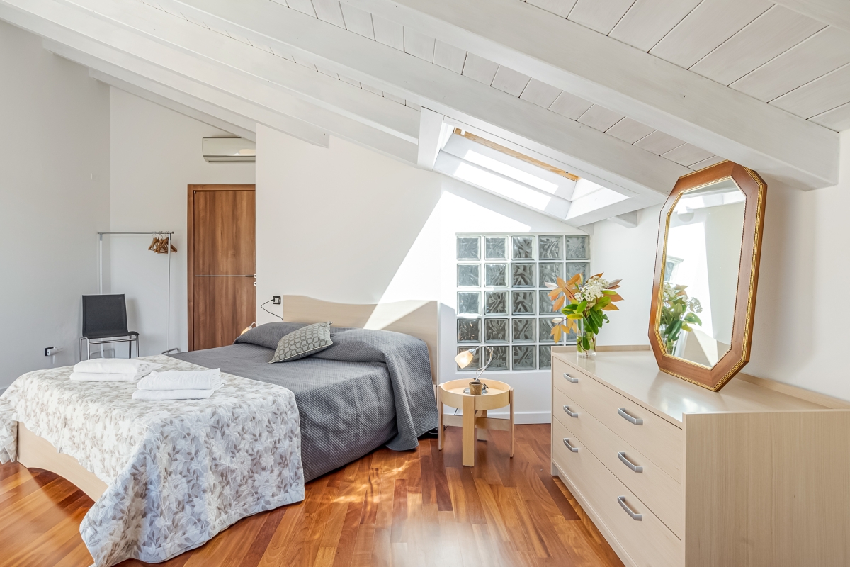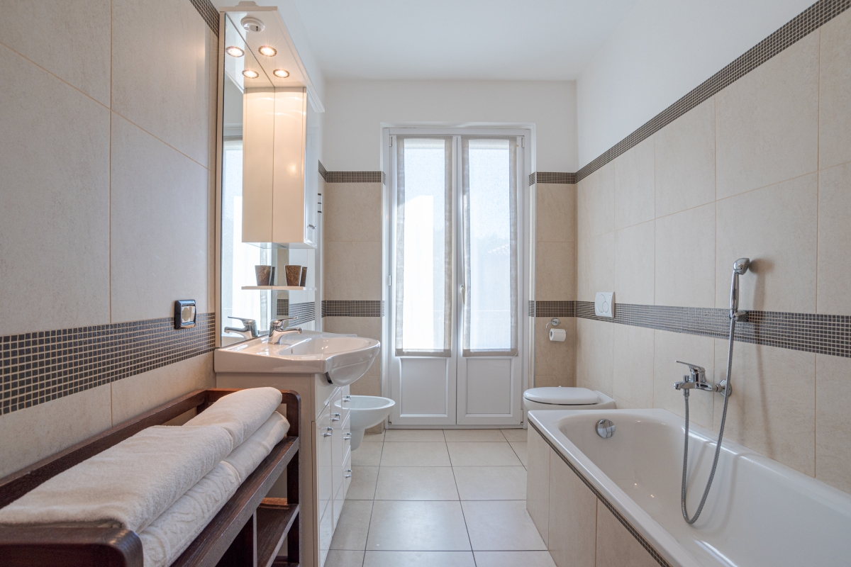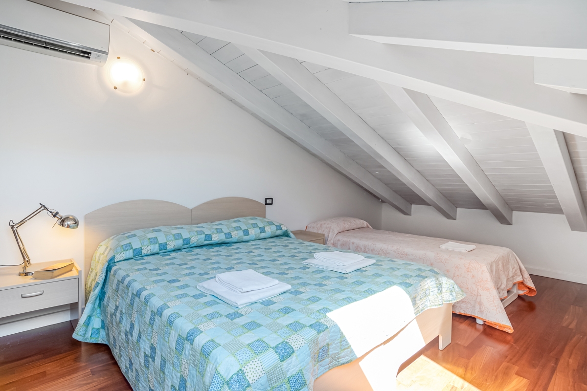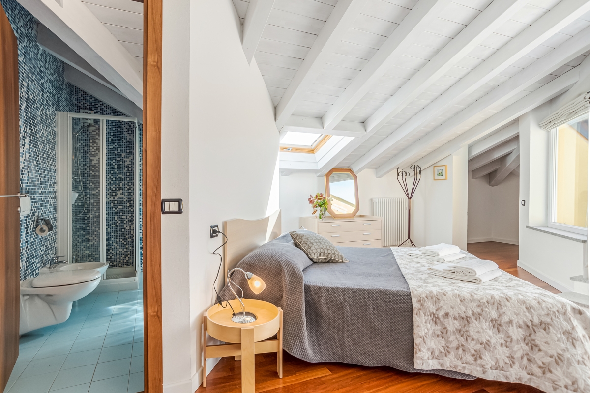 From the living room guests can access the sunny garden which is wonderfully positioned with lake and mountain views and which offers a portico terrace with a covered alfresco dining set and BBQ and a well maintained and child-friendly lawn with a slight and gradual slope. The side terrace with steps leads to a fabulous shared outdoor swimming pool with sun loungers (the pool is shared with only one other apartment); perfect for relaxation with a good book and glass of wine!