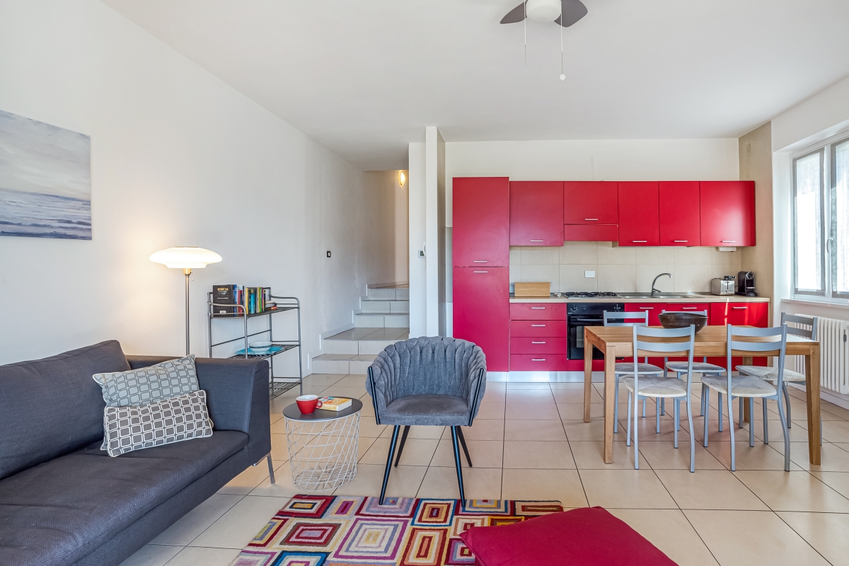 The Villa sits in a lovely and welcoming private garden and has been designed to a high specification throughout, in the modern-rustico style. The accommodation is arranged over two floors with the front door opening into a spacious open plan living room which is tiled and features a stylish and grey B&B Italia sofa, two comfortable armchairs, two small side tables and a flat screen TV with Apple TV connection.