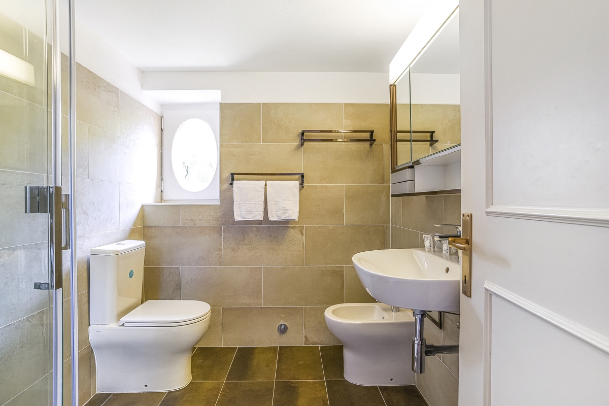 Bathroom 1: This bathroom features a bidet, shower, and WC in a contemporary style.