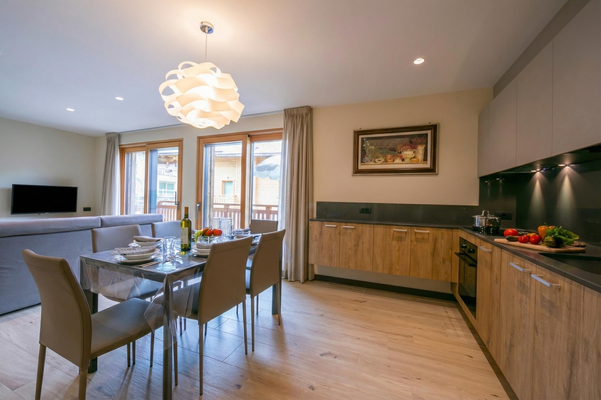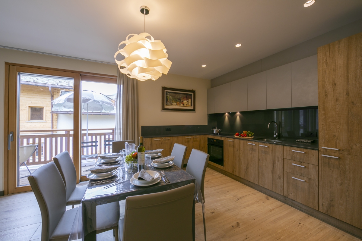 The newly furnished apartment offers access to a shared garden and a terrace with spectacular mountain views. Perfect for those who love an adrenaline-fueled holiday, the apartment is suitably located near skiing slopes and equipped with ski storage and a ski boot heater. Its spacious and well-ventilated living room has large outlets to the outside. There is a sitting area with a double sofa bed, a lovely dining set up and an open kitchen that is equipped with a coffee machine, a dishwasher, an oven, a microwave, an induction hob, a toaster, an electric kettle and a freezer. The first-floor apartment can be accessed by lift and is suitable for elderly guests as well as children.