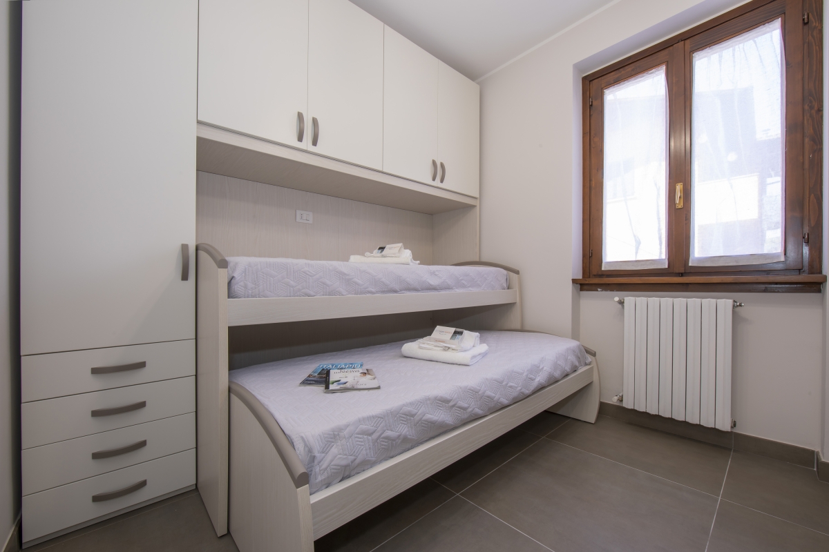 Bedroom 2: The second bedroom is furnished with two single beds and a fitted wardrobe.