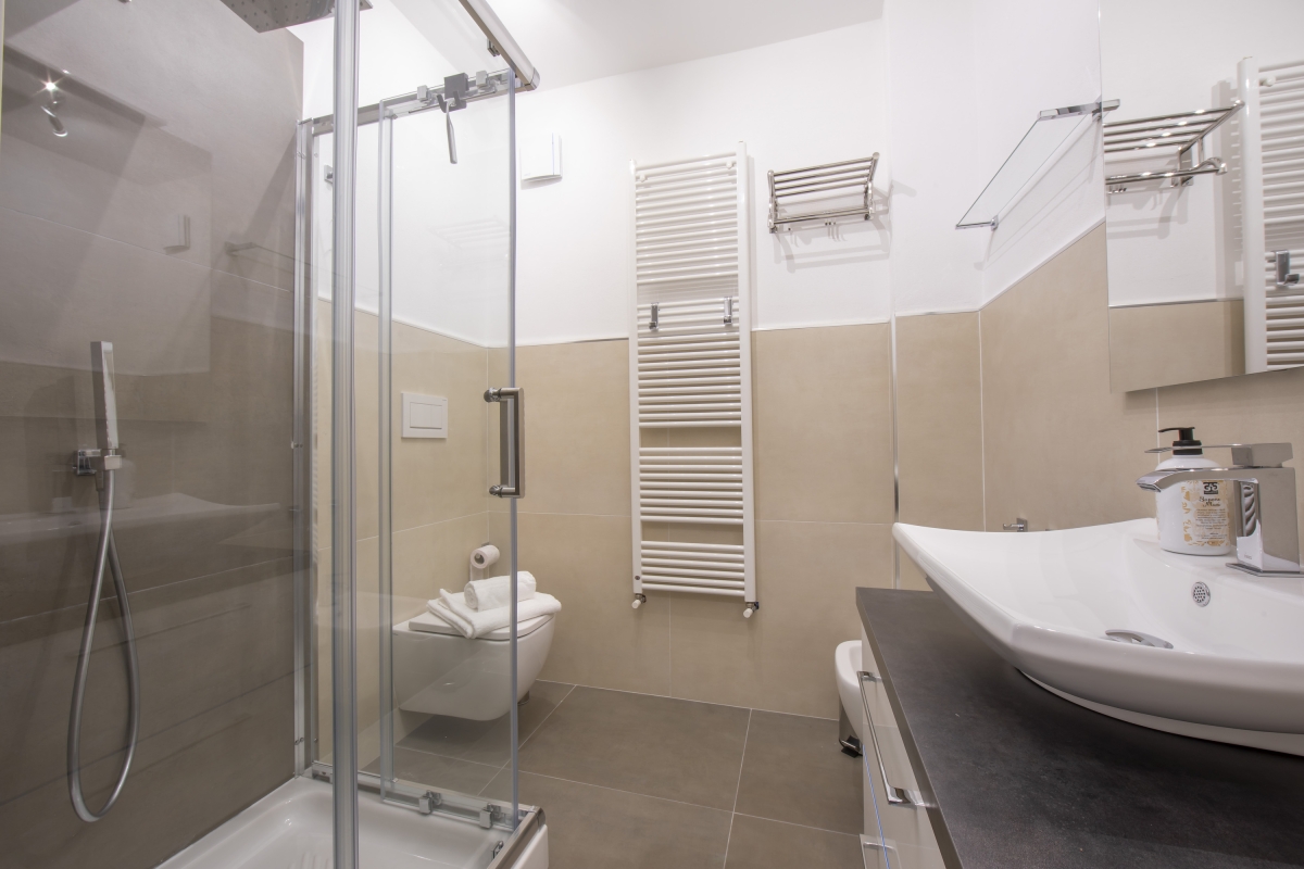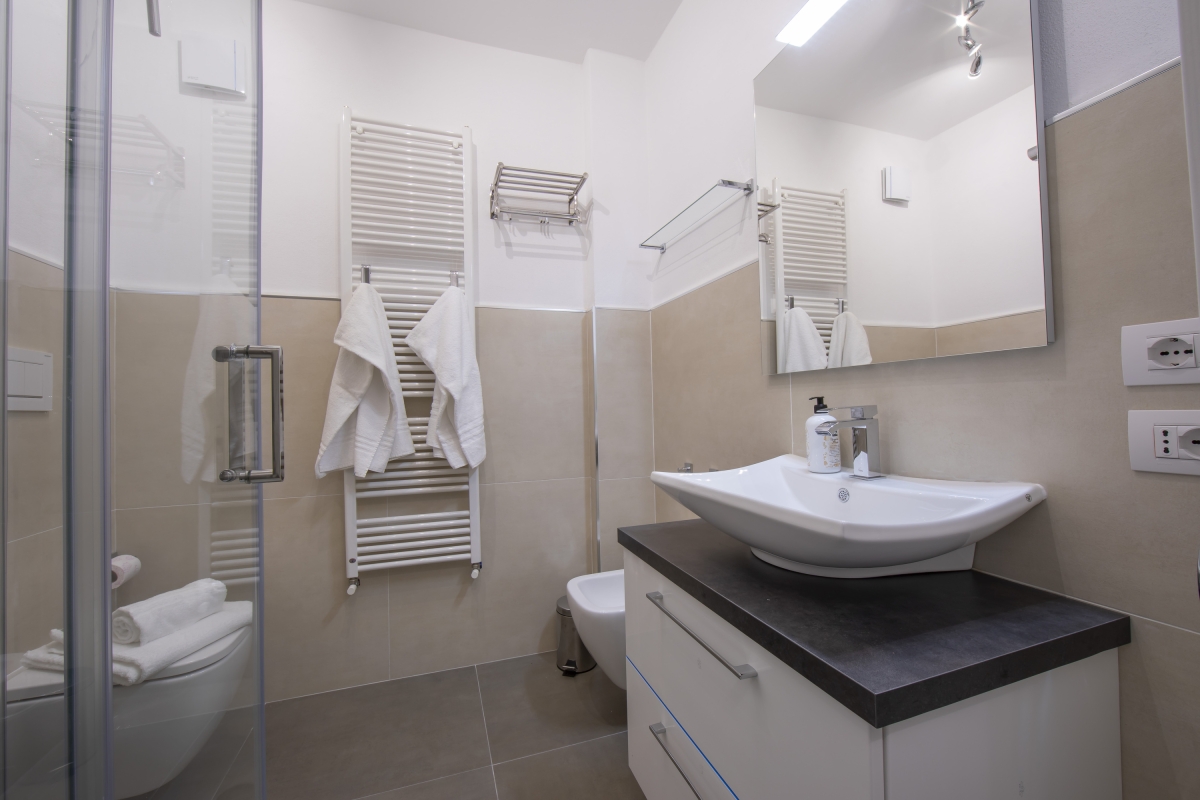 Bathroom 1: The bathroom is equipped with a shower cubicle, a bidet and a WC.