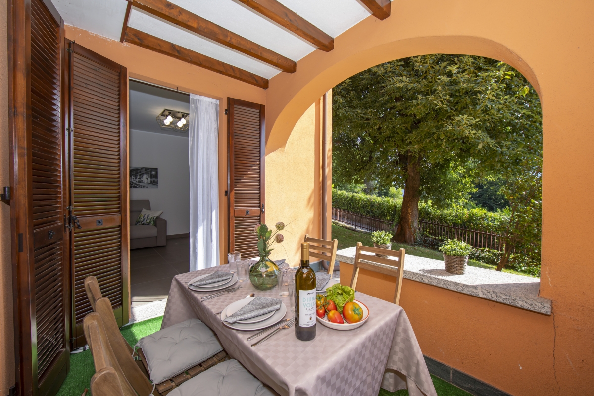 The recently renovated apartment with brand new facilities is located in a quiet locality and is ideal for up to 5 guests. Suitable for children and the elderly, this mountain-view holiday apartment offers access to a shared garden, partial lake view and a private terrace with an outside dining area.