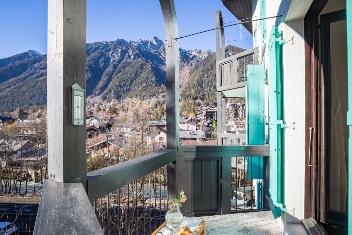 Enjoy a great mountain view, vibrant sunny interiors, and proximity to Chamonix centre from this duplex balcony holiday apartment for 4!