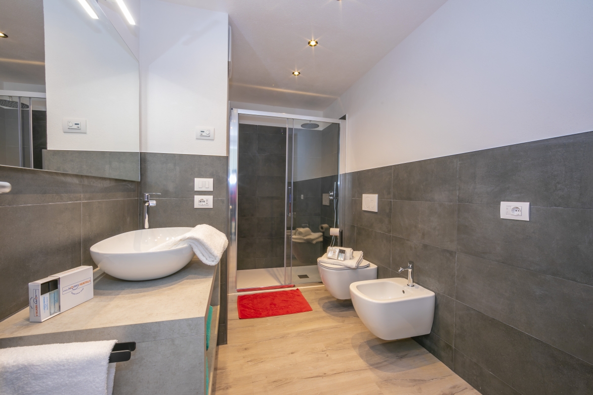 Bathroom 1: The shared bathrooms suite has a shower, a bidet, a washbasin and a WC.