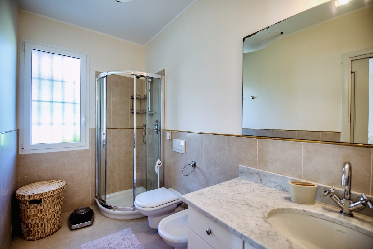 Bathroom 3: A bathroom well equipped with a shower, a bidet, a WC and a basin with a mirror.