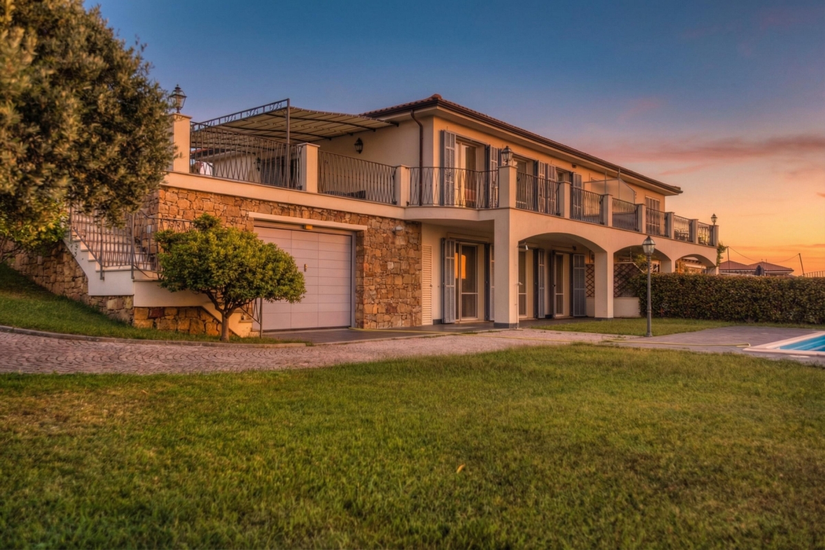 Discover romance in this stunning sea-view villa away from the hustle in Sanremo. Nestled amidst greenery, this magnificent villa with a private pool offers a peaceful retreat for couples or families seeking relaxation. It is spread across two floors, featuring five bedrooms and a large living room surrounded by a spacious terrace overlooking the pool, perfect for hosting a group of 10.