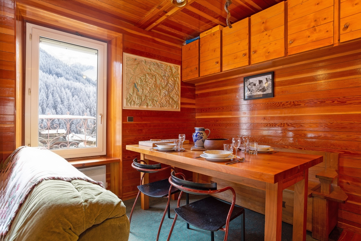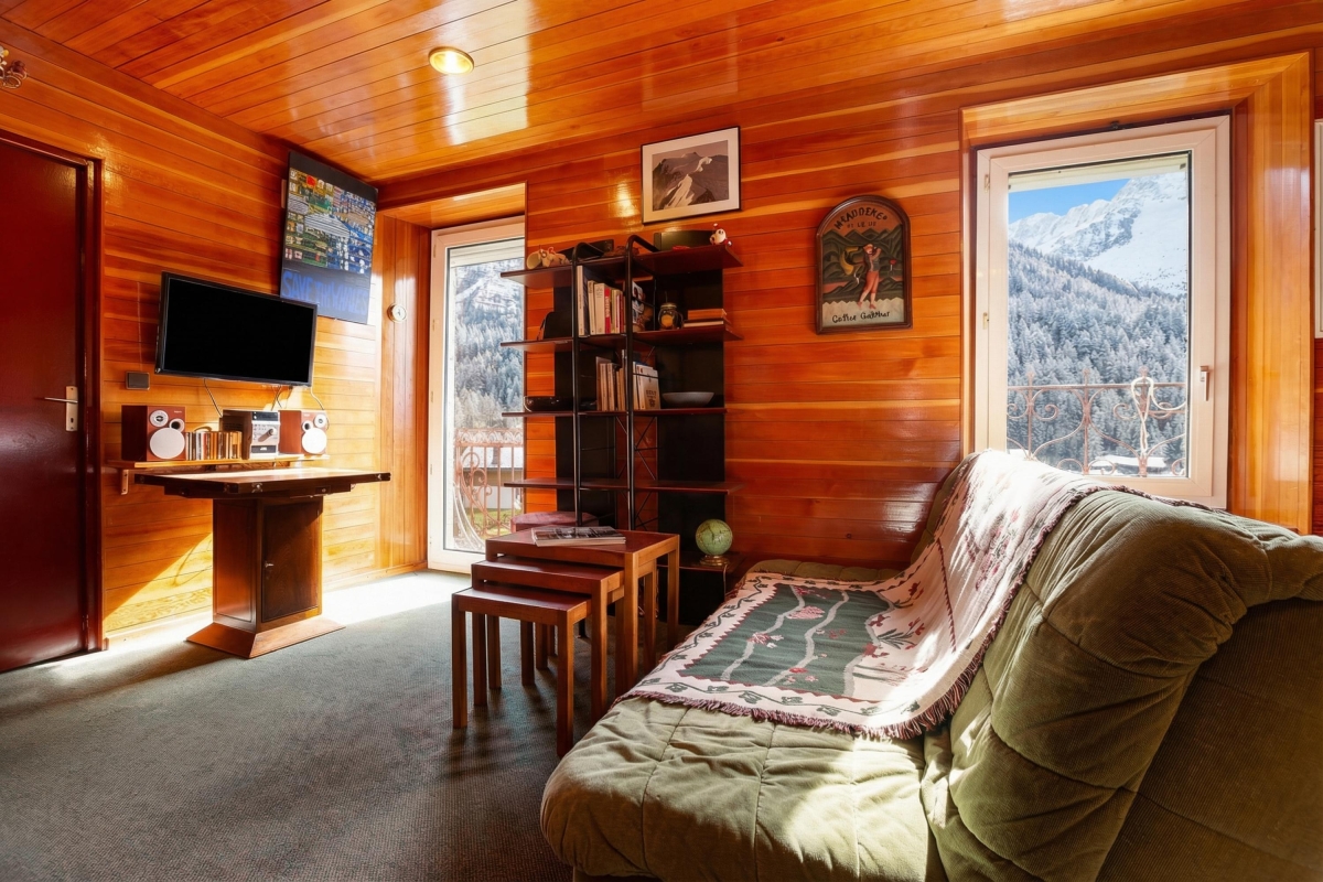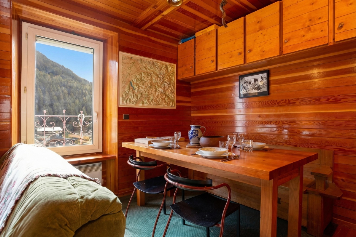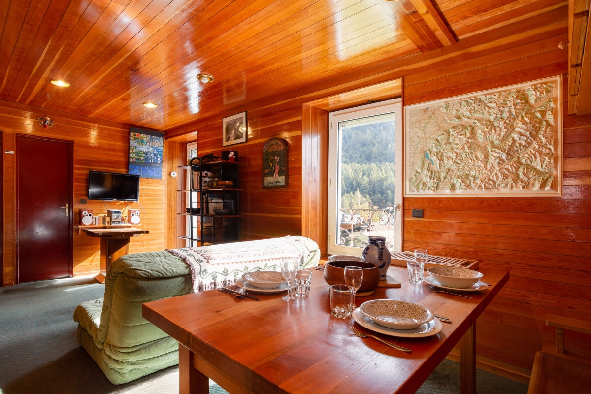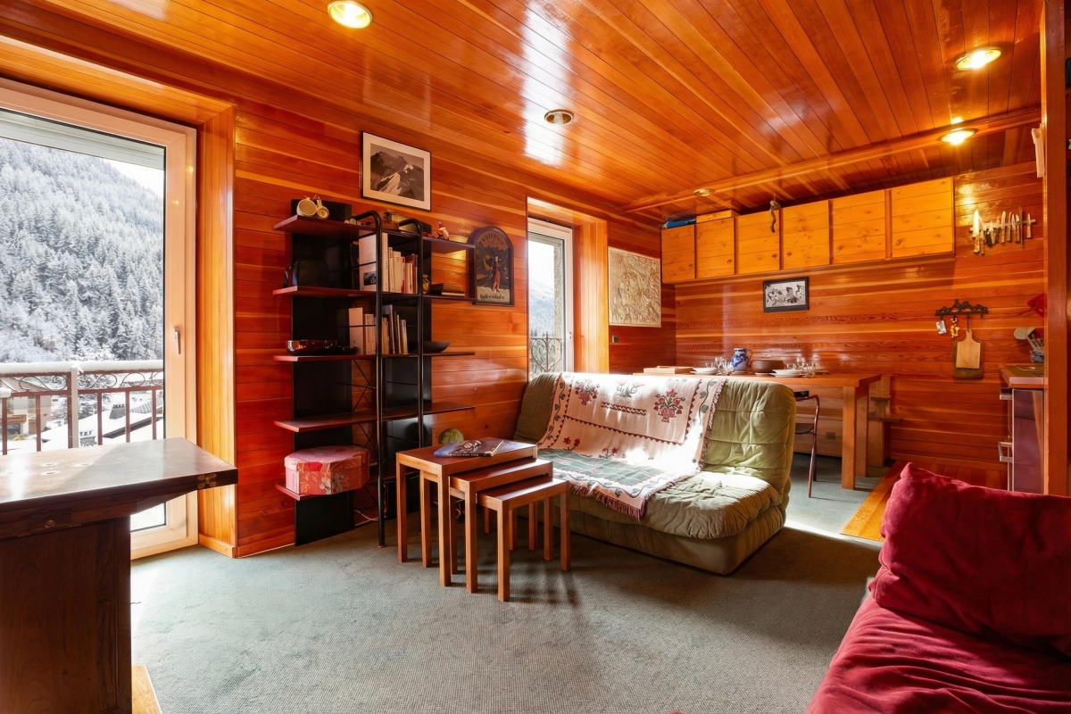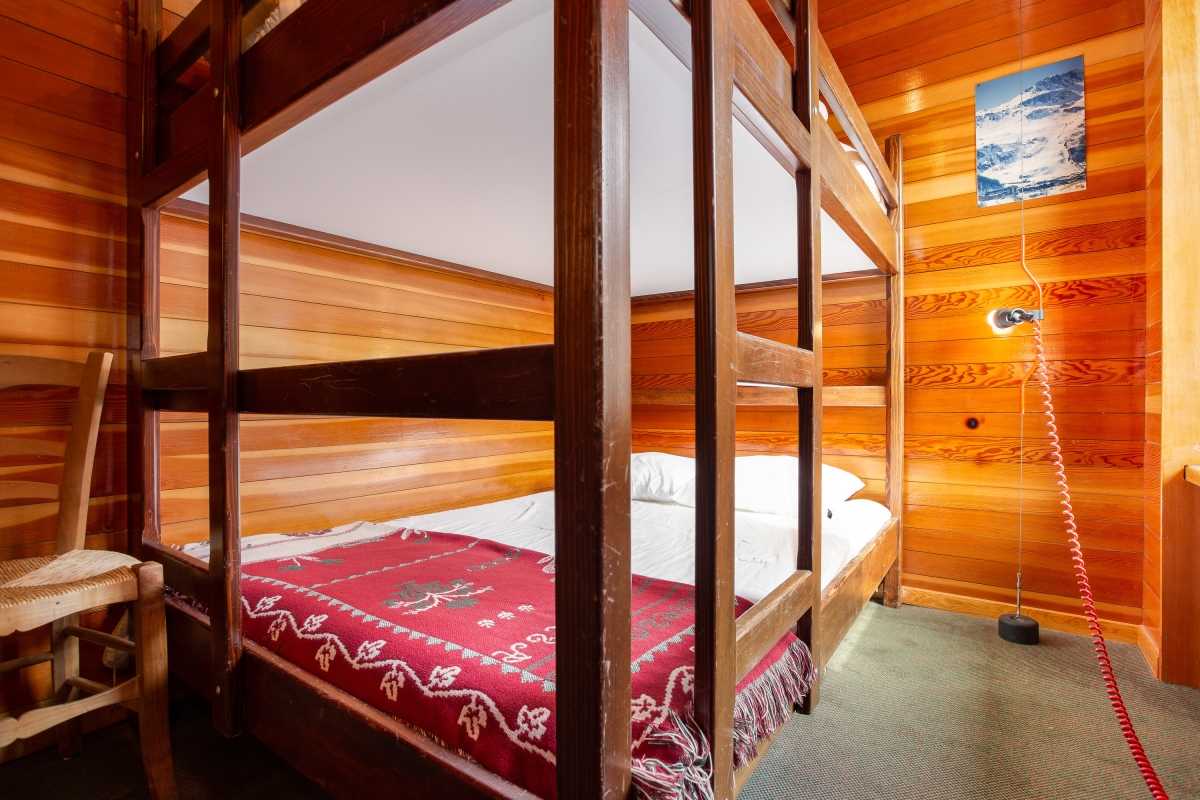 Inside, a bright and inviting living room with double sofas and access to a private balcony offers the perfect setting for guests to unwind after a day on the slopes. An open-plan and well-equipped kitchen with a dining area enables guests to eat-in at their leisure, for cost-effective ski breaks. A bright and restful bedroom furnished with a set of double bunk beds is ideal for small families and is complemented by a modern bathroom with shower.