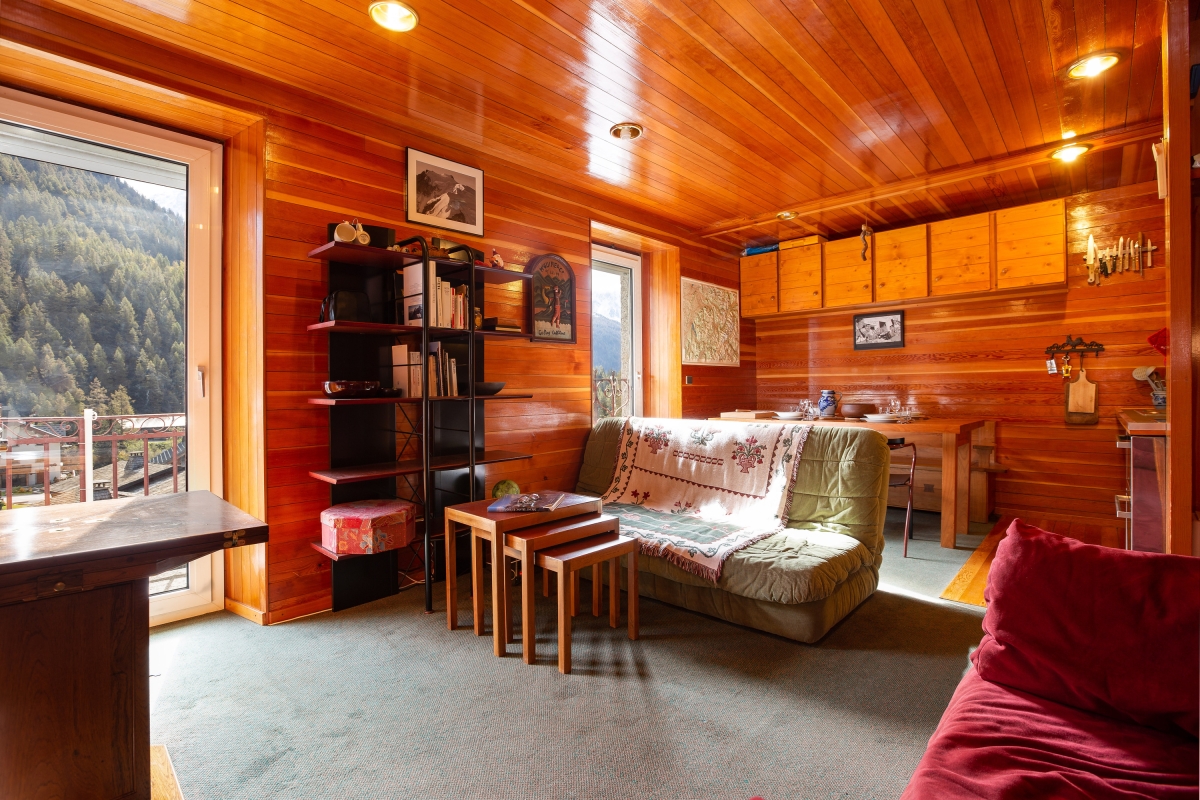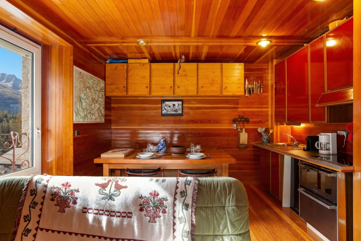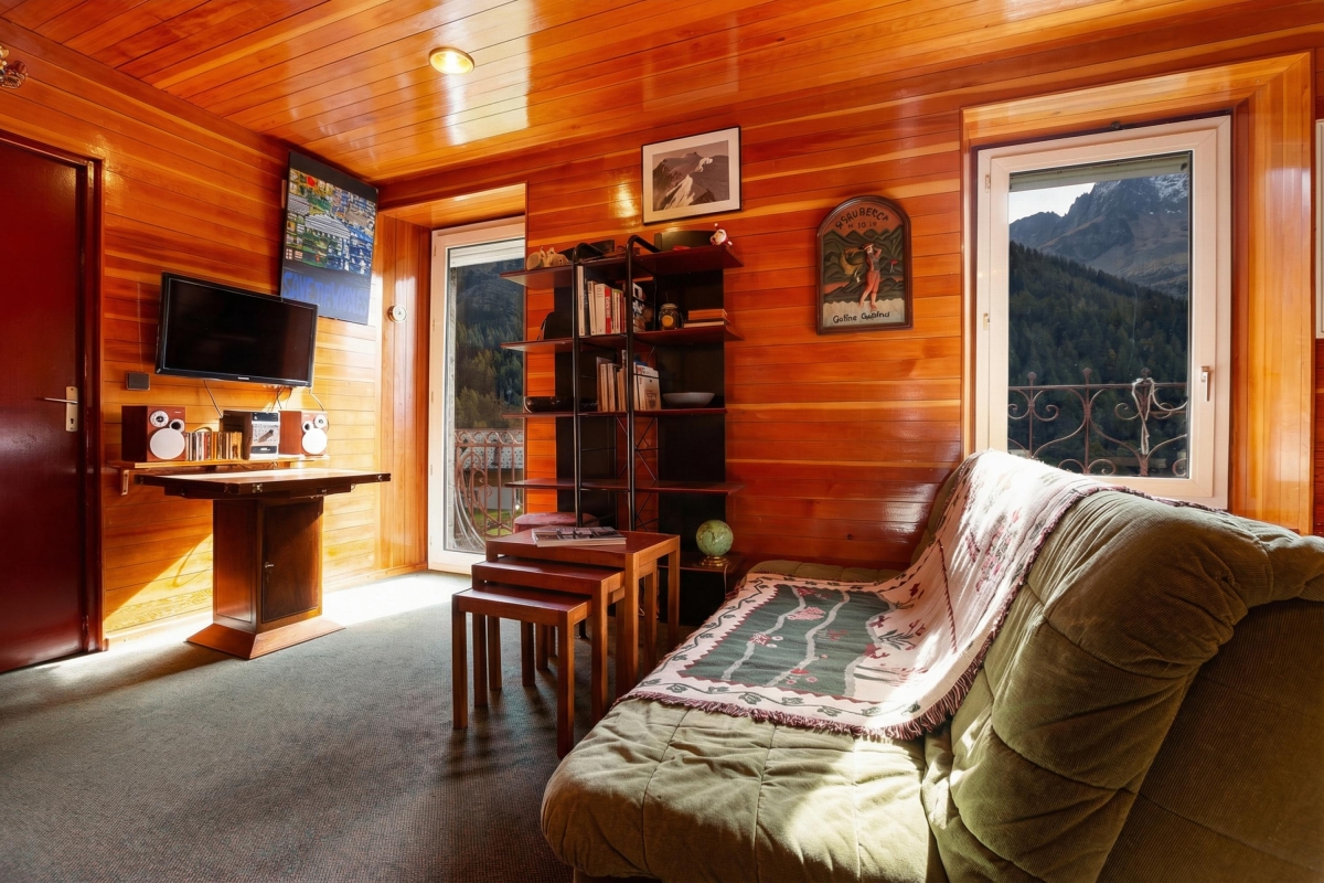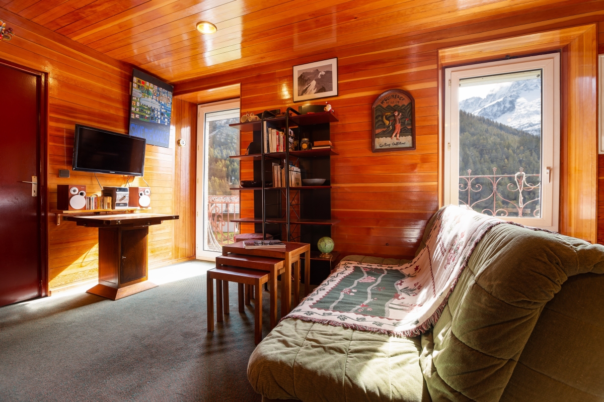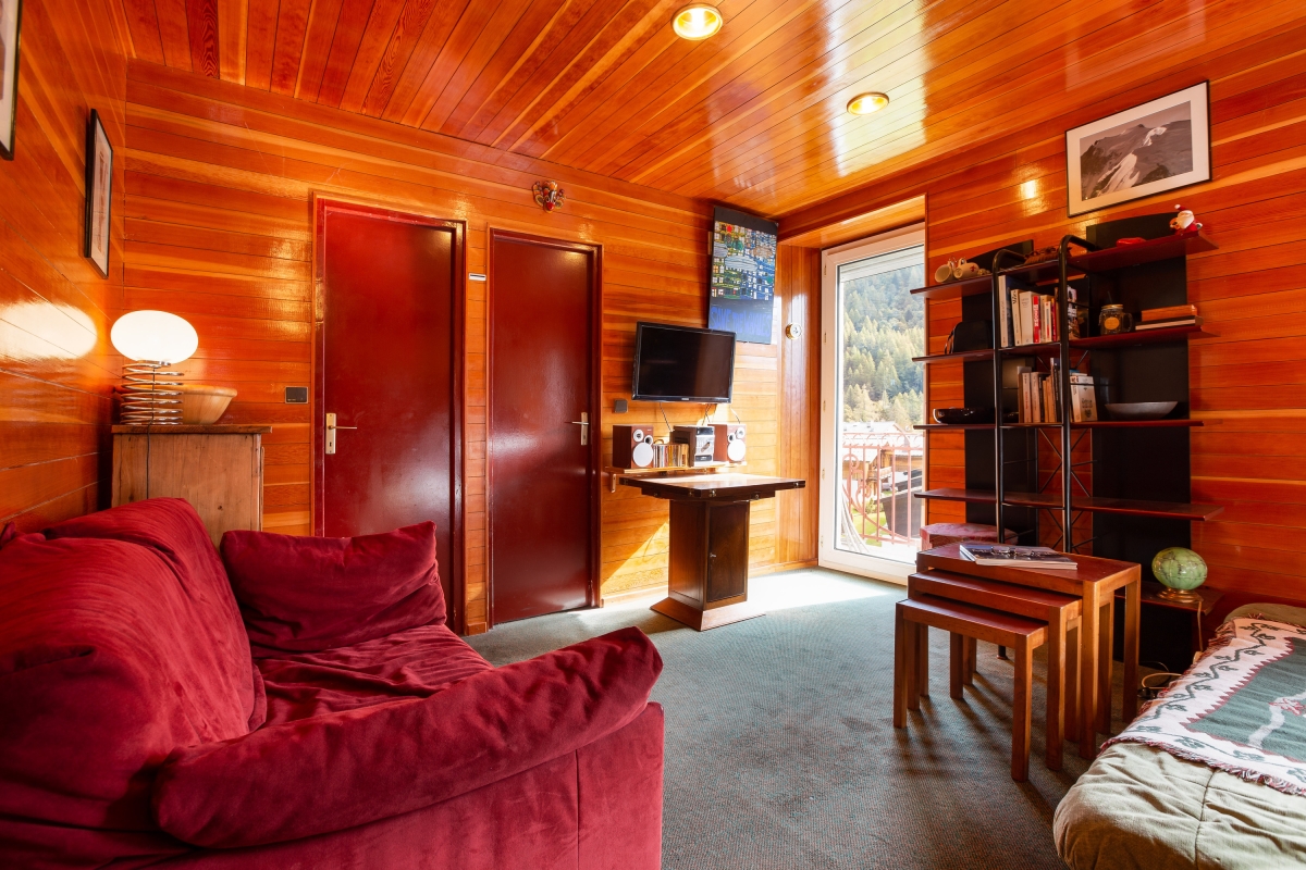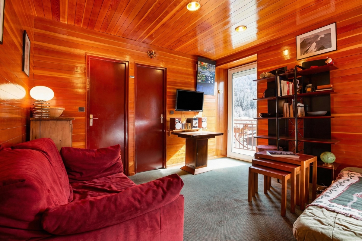 Inside, a bright and inviting living room with double sofas and access to a private balcony offers the perfect setting for guests to unwind after a day on the slopes. An open-plan and well-equipped kitchen with a dining area enables guests to eat-in at their leisure, for cost-effective ski breaks. A bright and restful bedroom furnished with a set of double bunk beds is ideal for small families and is complemented by a modern bathroom with shower.