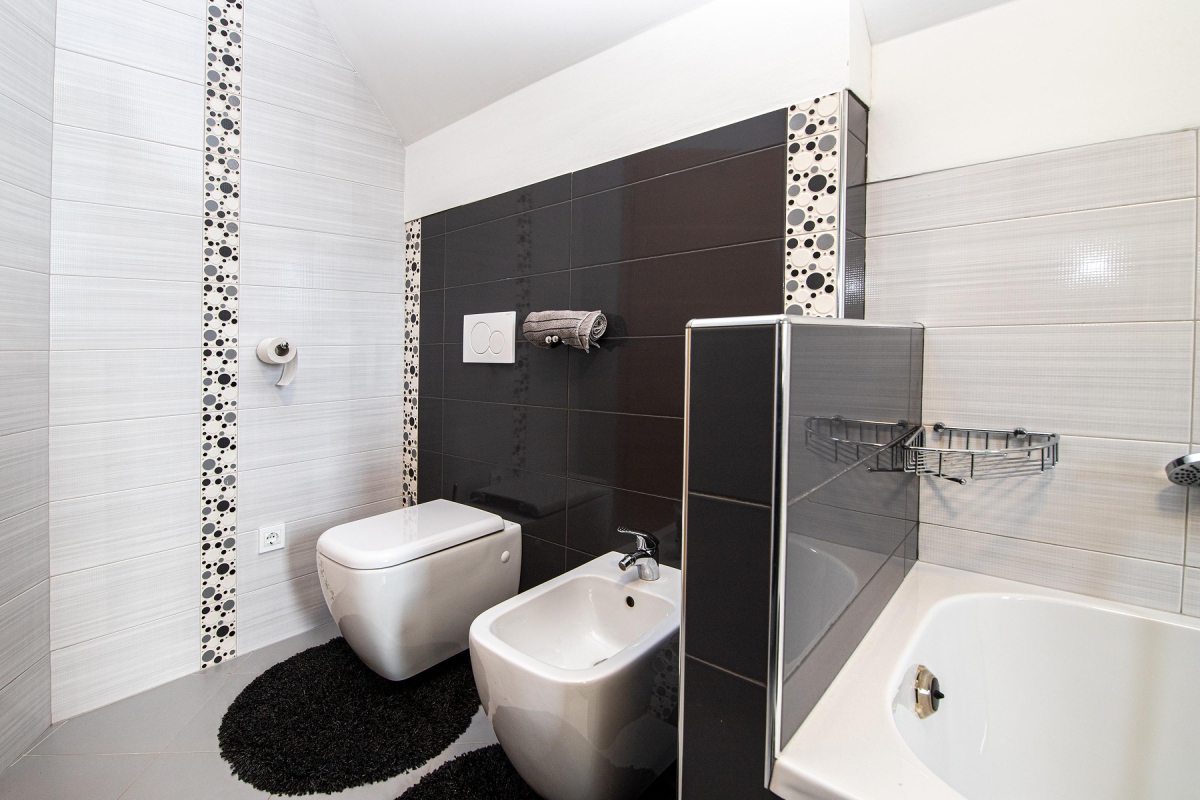 Bathroom 1: The modern bathroom has a bathtub, a bidet and a WC.