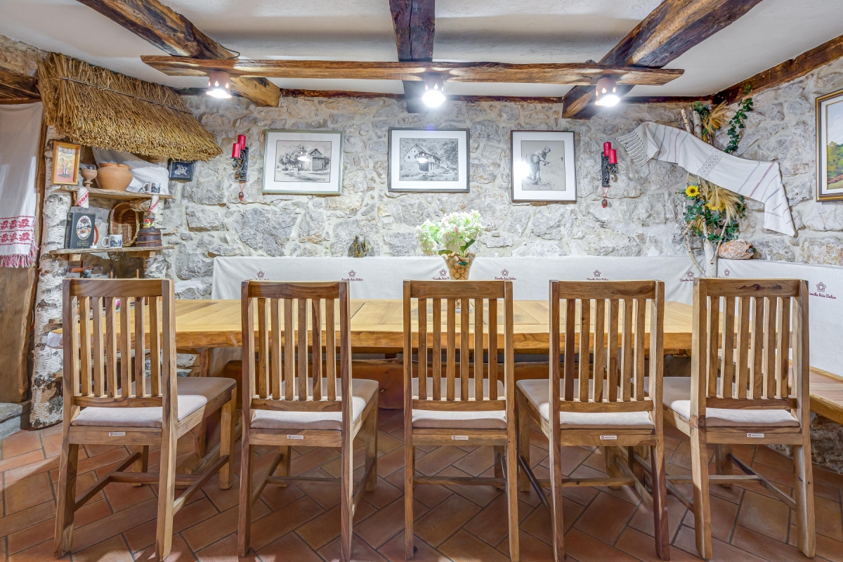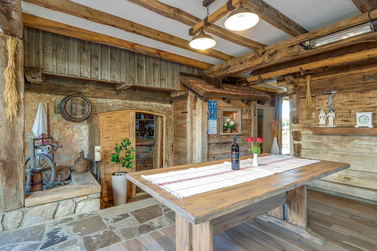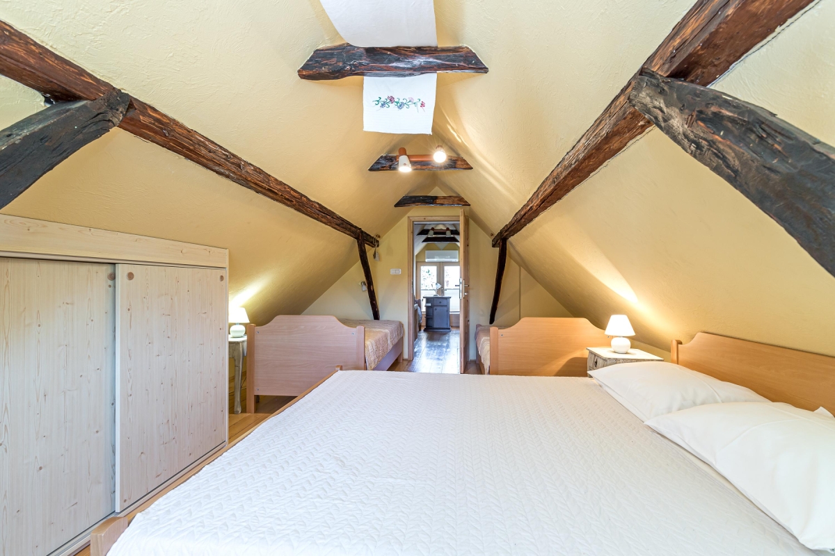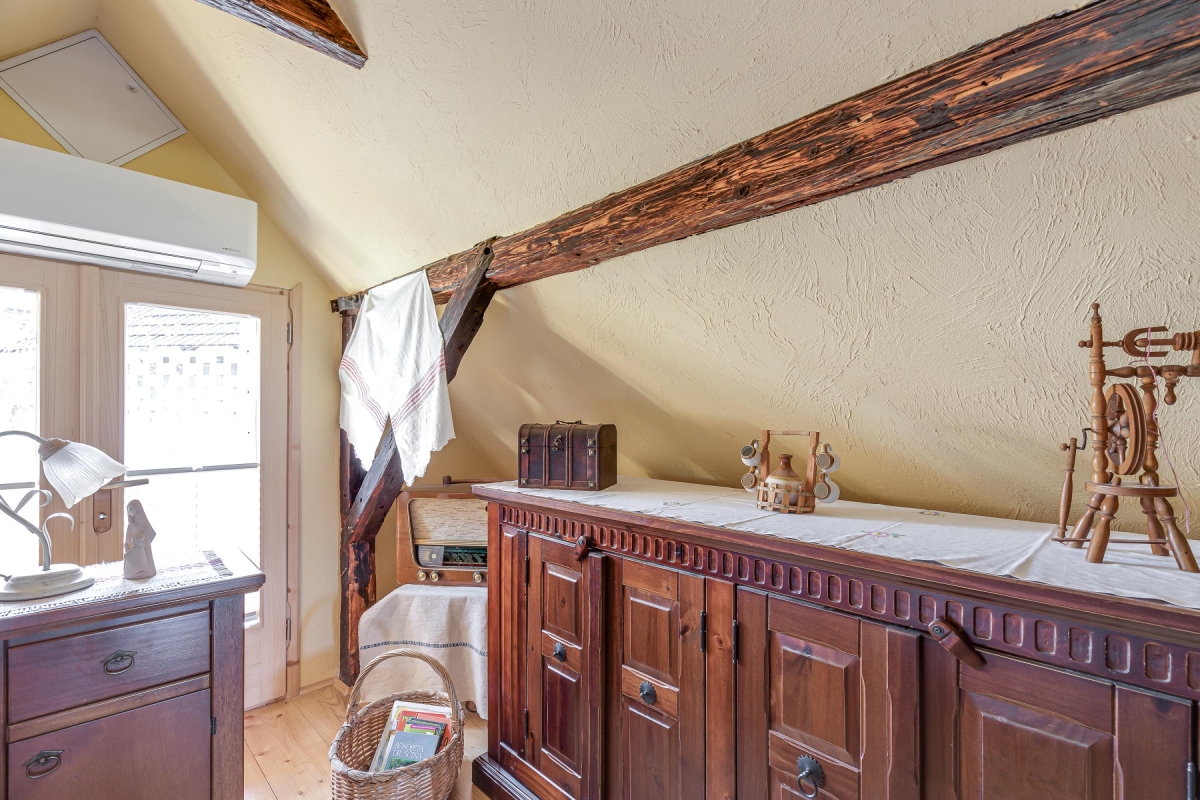 The beautiful house is a typical example of the traditional houses of the rural region of Bela Krajina. Often called the folk heart of Bela Krajina, Črnomelj, where the homestead is located, is a quiet place that comes to live during their popular Jurjevanje festival when hundreds of artists gather here. For the rest of the year, it remains peaceful where guests can immerse in nature and enjoy a tranquil holiday. There are scenic trails waiting to be explored and thermal spas where one can melt their stress away. The place is known for its incredible natural beauty, a few historical attractions, museums and galleries displaying traditional art of the region and churches.