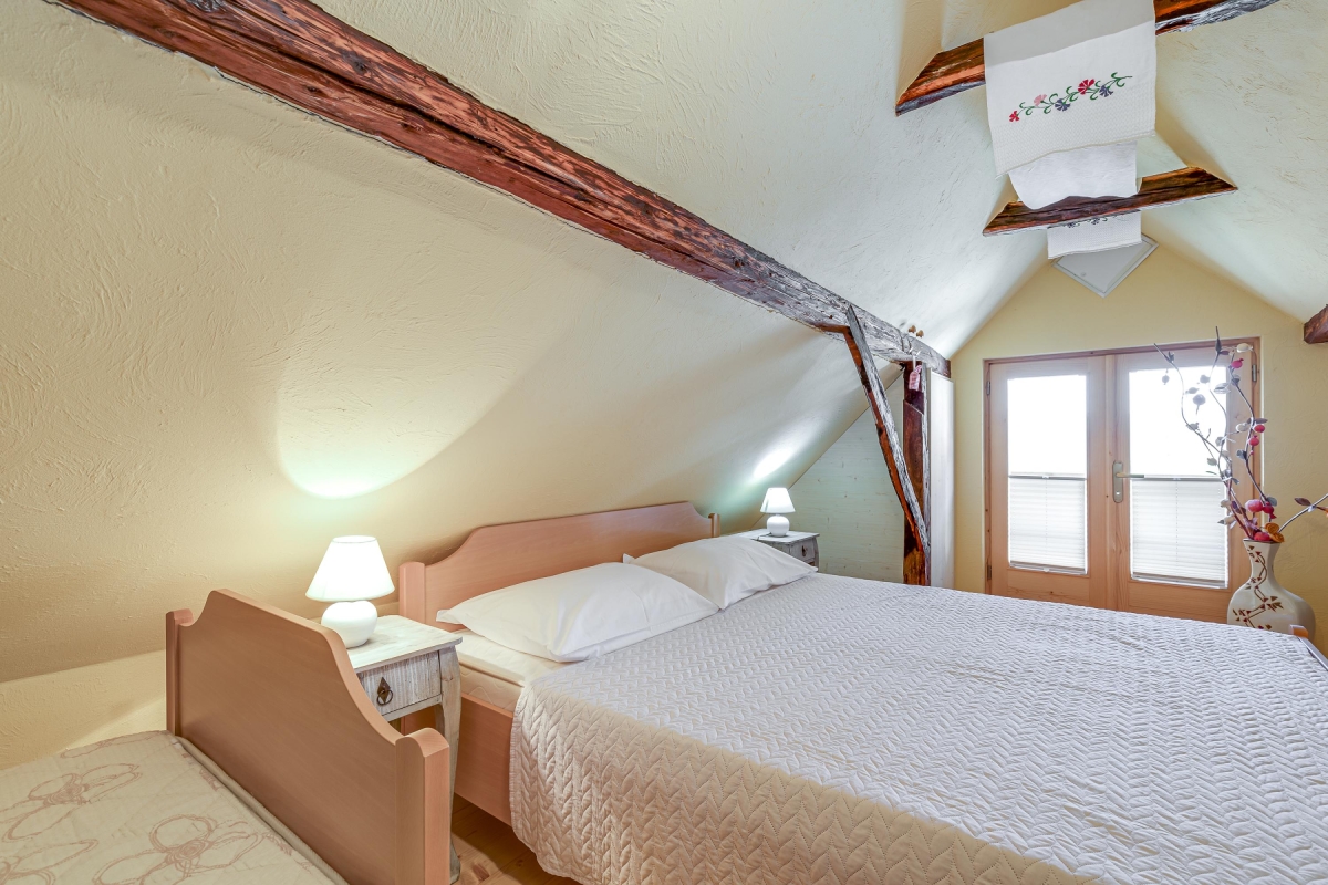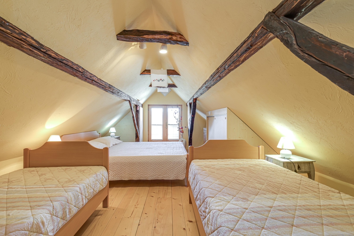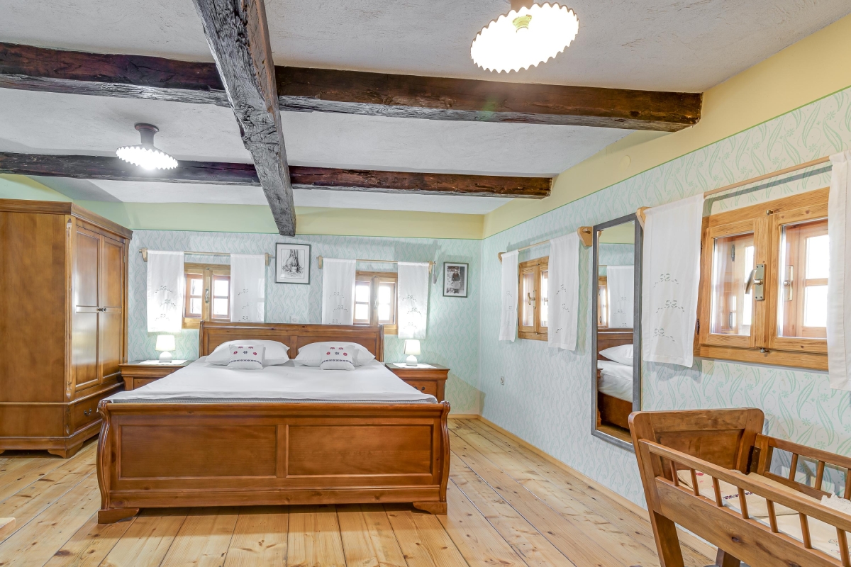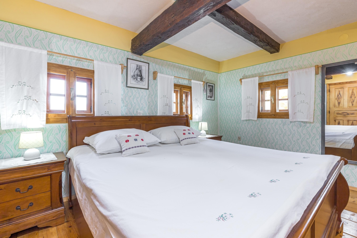 The beautiful house is a typical example of the traditional houses of the rural region of Bela Krajina. Often called the folk heart of Bela Krajina, Črnomelj, where the homestead is located, is a quiet place that comes to live during their popular Jurjevanje festival when hundreds of artists gather here. For the rest of the year, it remains peaceful where guests can immerse in nature and enjoy a tranquil holiday. There are scenic trails waiting to be explored and thermal spas where one can melt their stress away. The place is known for its incredible natural beauty, a few historical attractions, museums and galleries displaying traditional art of the region and churches.