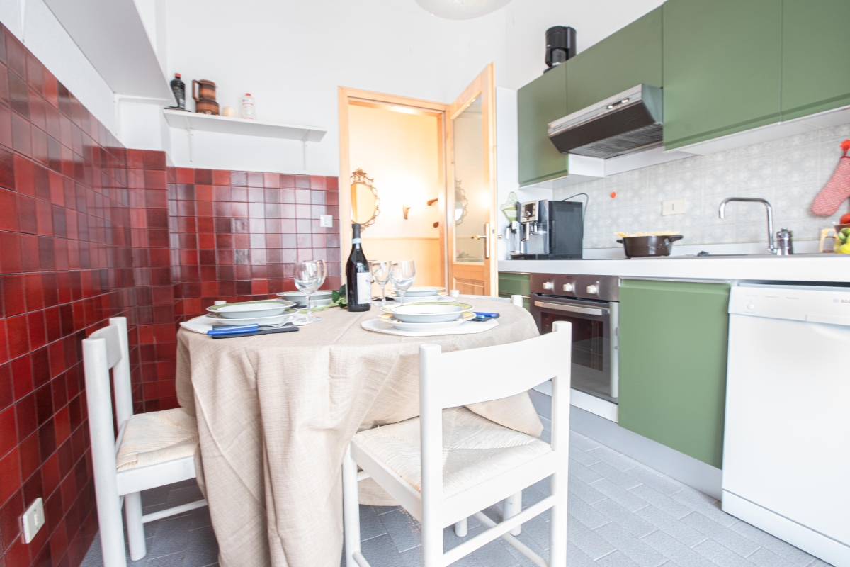 Within the premises, there is a pool and a garden to which guests have access to along with other inhabitants of the house. It is quite an experience to stay outdoors surrounded by greenery with an open-air pool to swim and sunbeds to lounge and relax in the pleasant weather. Guests can also enjoy sea views from the living room of the apartment. The kitchenette opens into a private terrace with a table and chairs for the exclusive use of the guests. Inside, there is a set of sofa, a TV and a dining table in one of the corners. The kitchenette is separate and equipped with a dishwasher, an oven, an induction hob, a toaster and a fridge. It is a treat to cook here.
