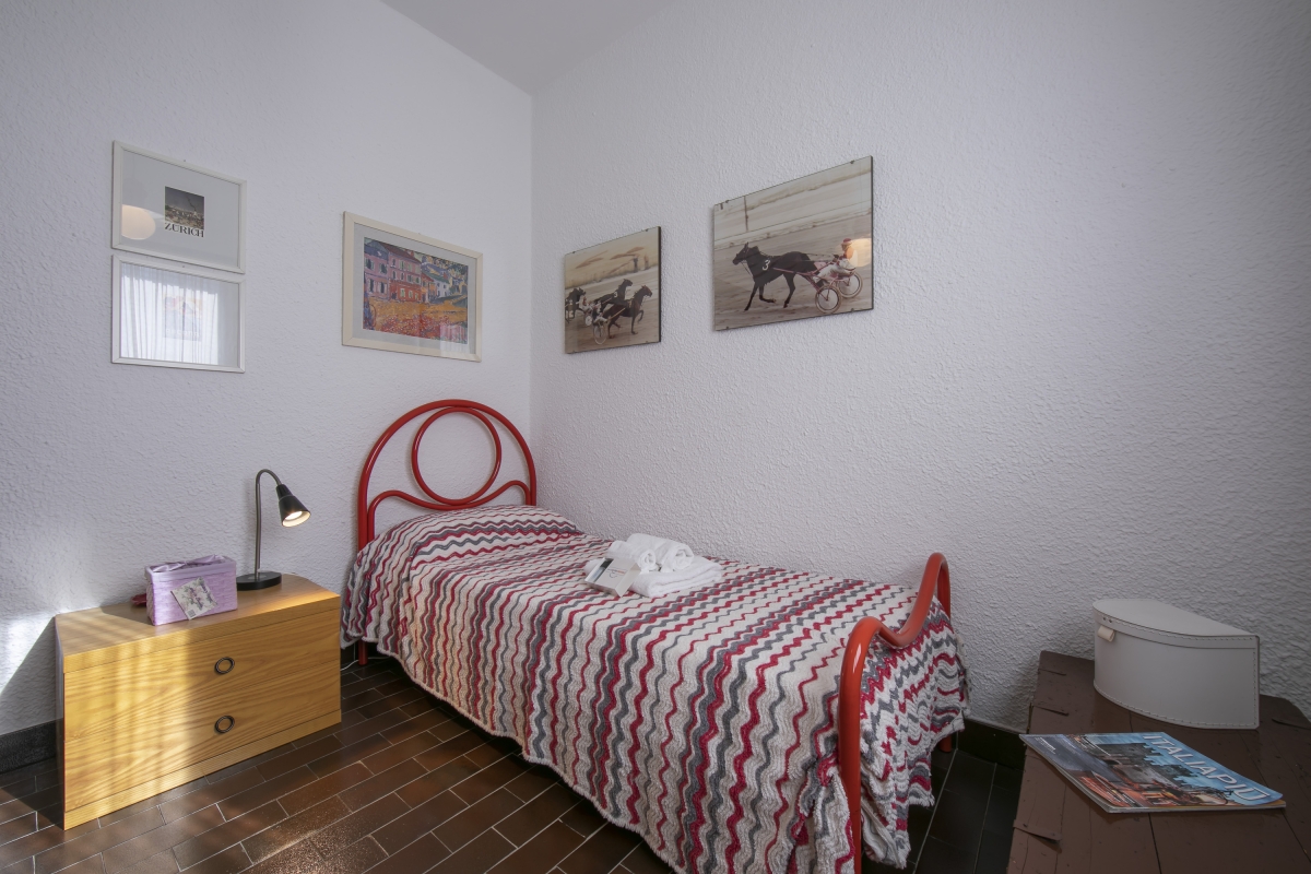 Bedroom 3: The sunny room has a single bed, a work desk and a wardrobe.