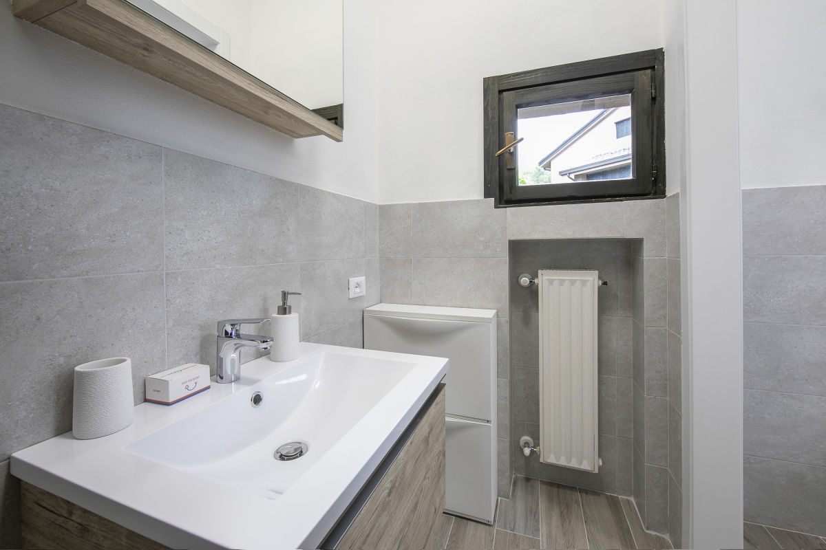 There is also a service bathroom on the ground floor with a washbasin, a WC and a washing machine.