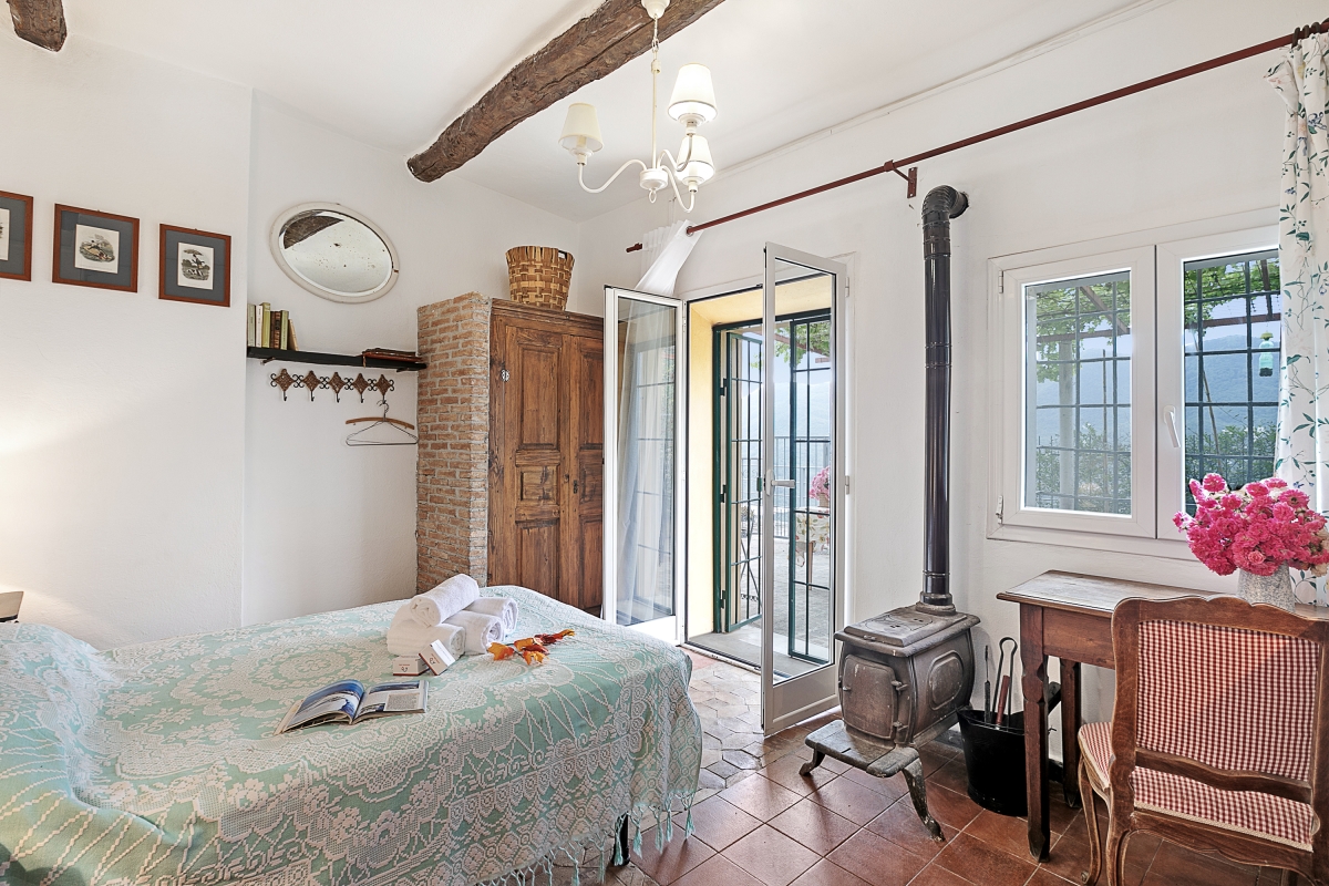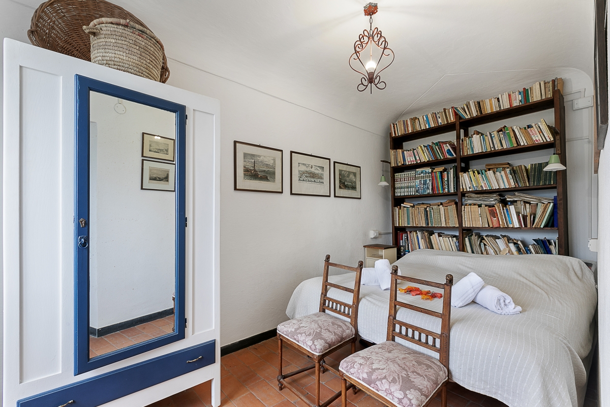 Bedroom 3: On the lower floor, this bedroom is furnished with 2 single beds, which can be joined by prior arrangement. A glass door opens onto a terrace.