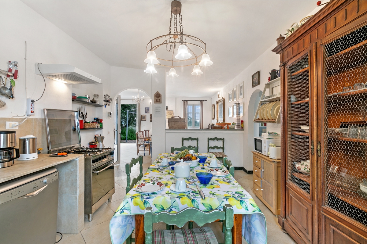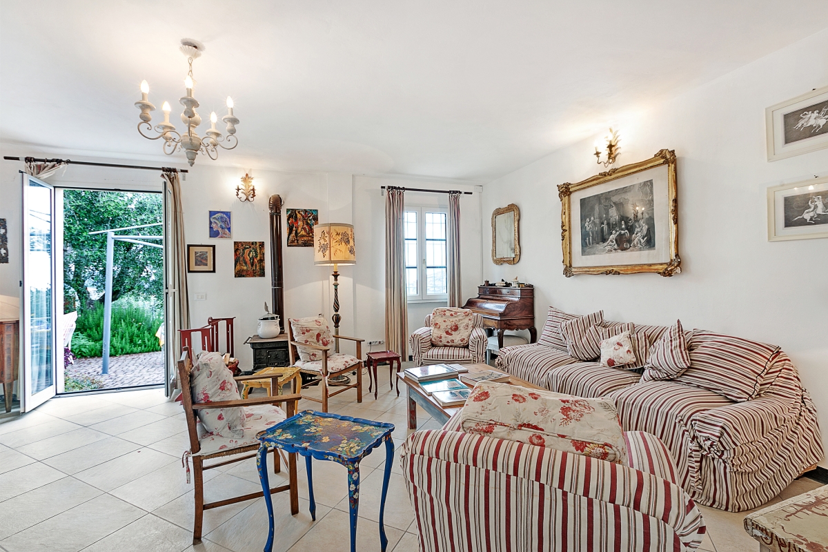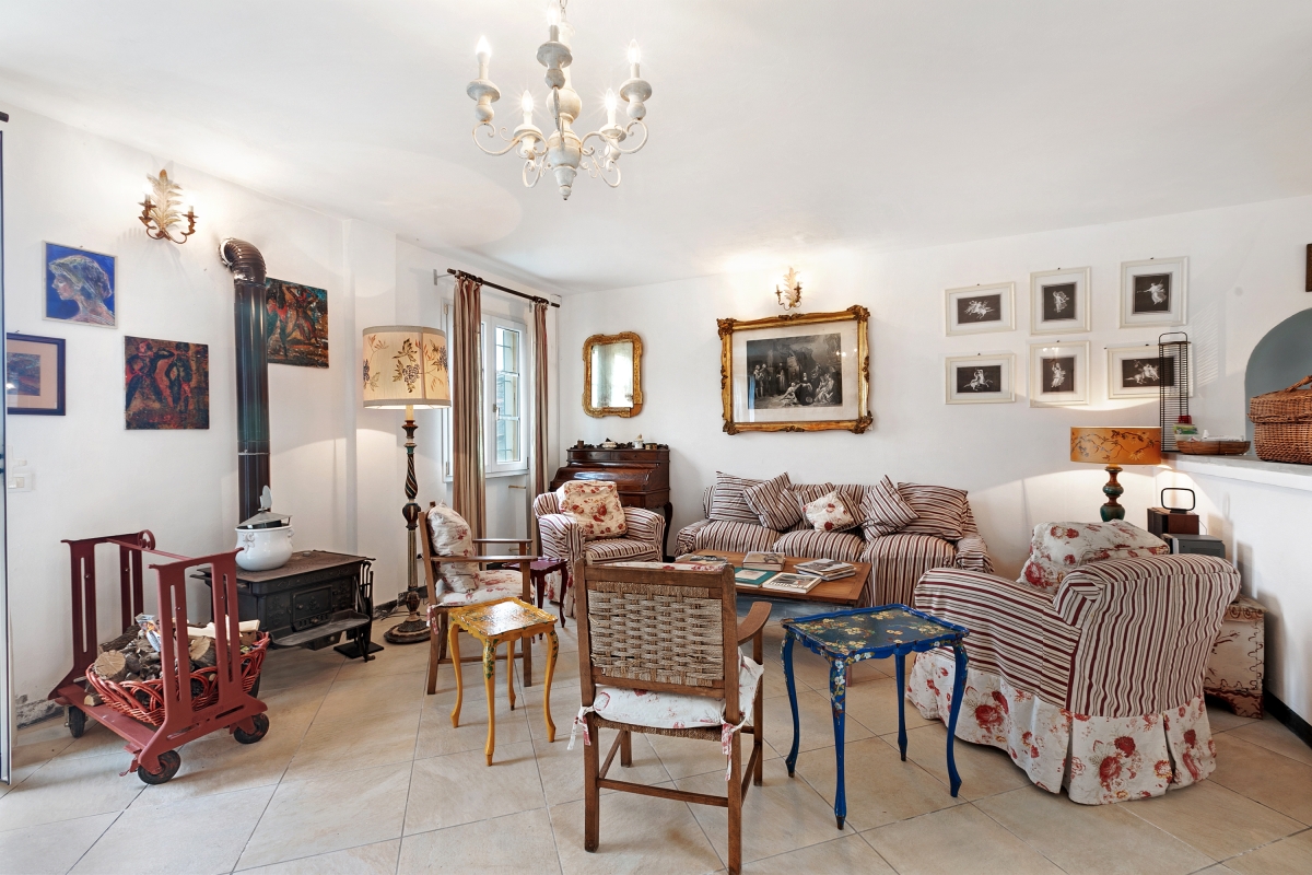 The house gets its name from the artistic flair with which it has been decorated, and it does not disappoint. The spacious, light-filled living room is furnished with comfortable sofas and armchairs with a combination of contemporary and antique pieces. French windows lead out to the private terrace garden. On the other side of the room, a large archway leads into the stunning kitchen. The sunny kitchen has an antique cupboard on one side, an attractive wooden dining table in the centre and then the utilities, which include a cooker hob, oven, microwave, dishwasher, fridge, freezer and coffee machine (Mokka).