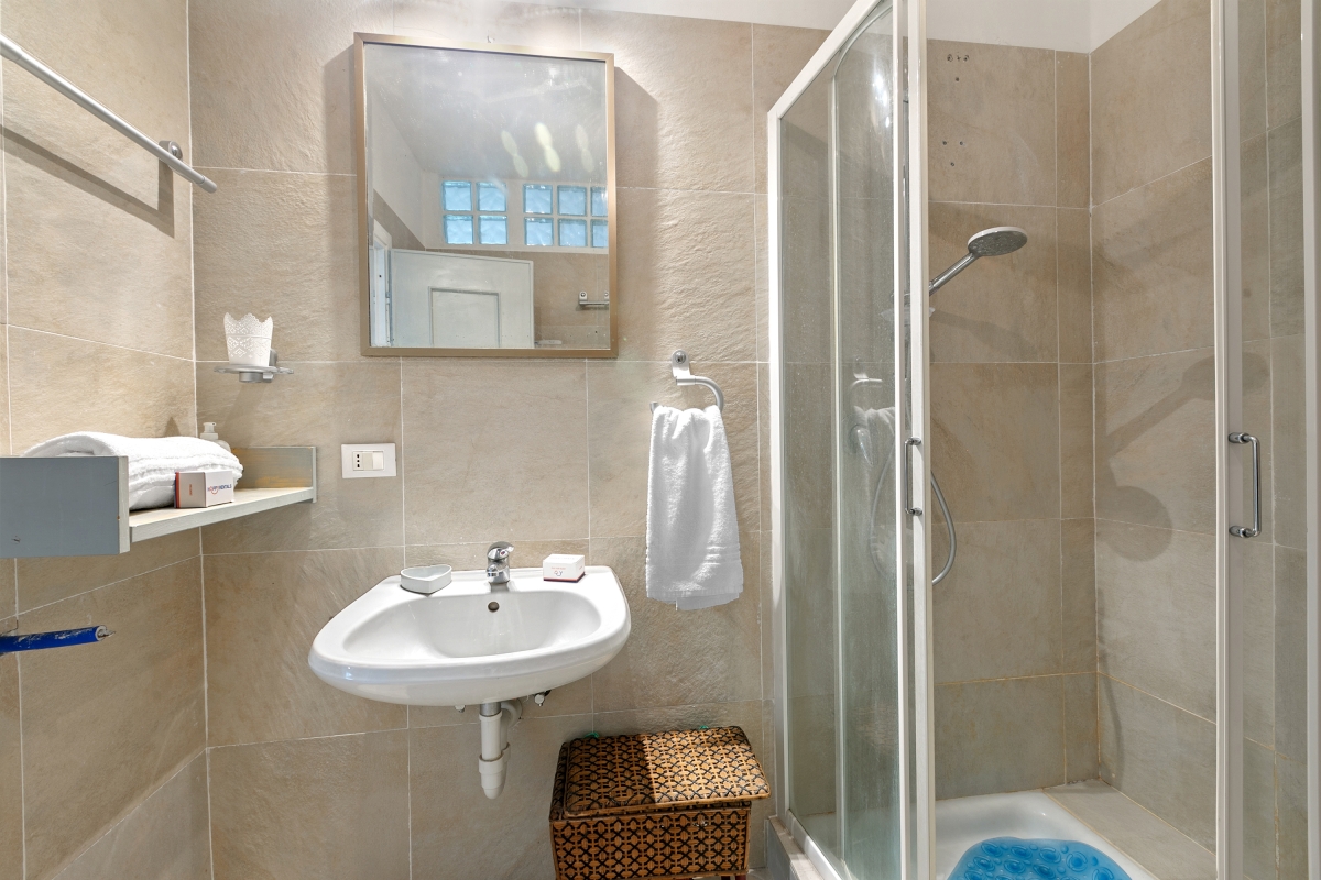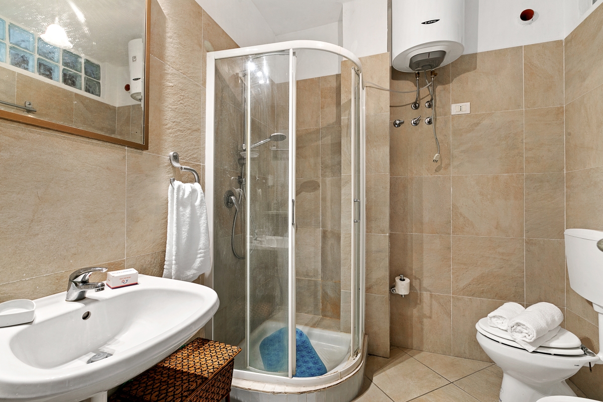 The pretty bathroom is equipped with a shower, basin, bidet, WC and electric boiler.