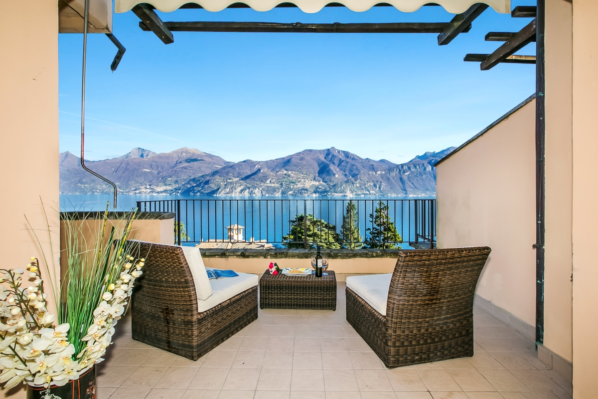 Guests can enjoy the direct views of the central lake from the living area, and after opening the glass doors can access the private sunny terrace which is ideal for accommodating guests for splendid alfresco dinner parties, with the breathtaking backdrop of the Bellagio peninsular and unspoilt eastern shore in view. Sun loungers also provide guests with the perfect relaxation spot for reading a book or enjoying a cocktail!