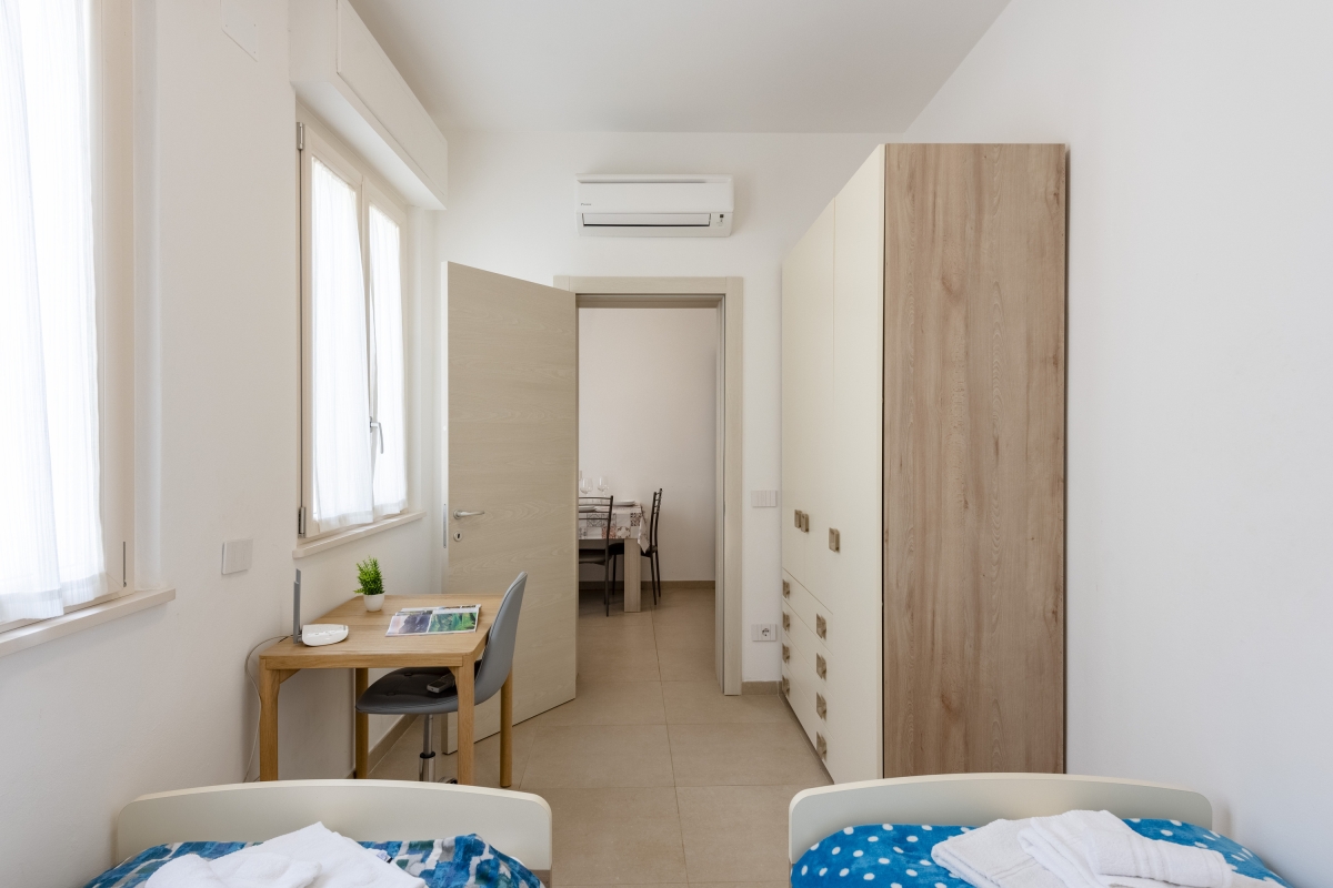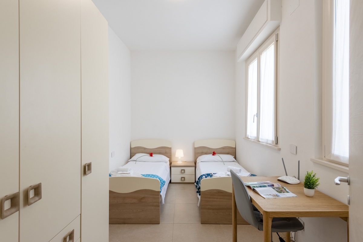 Bedroom 2: The cozy room has a pair of single beds, a wardrobe, a desk and a large window for natural light.