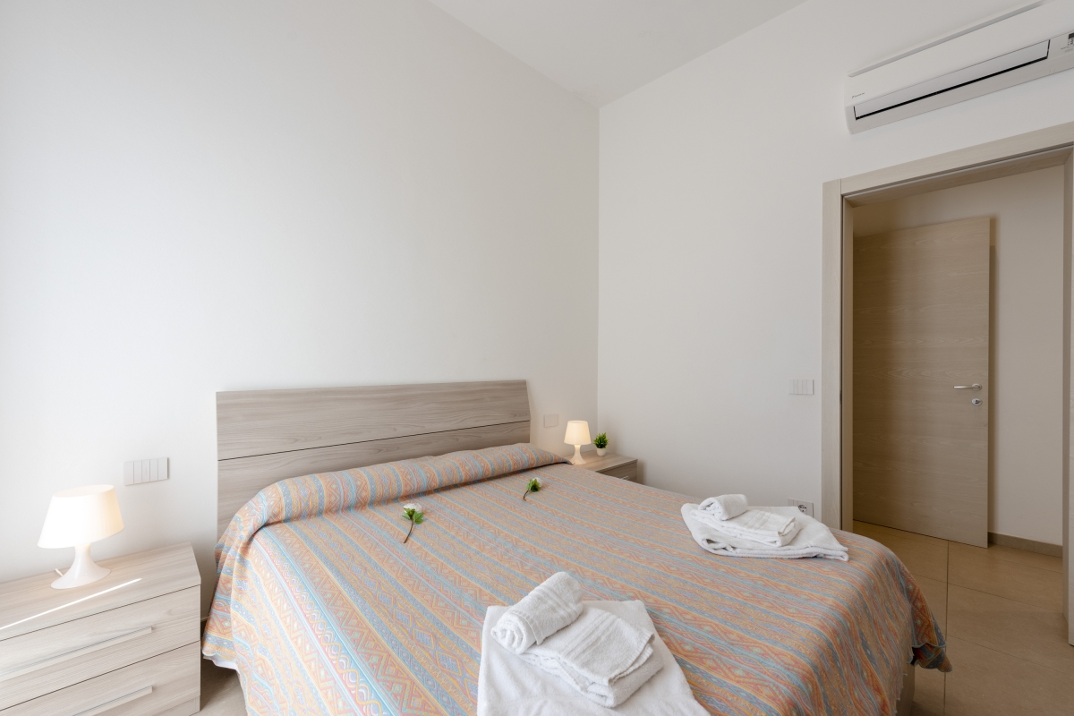 Bedroom 1: The bedroom with balcony access and lots of natural light has a king-size double bed and a wardrobe.
