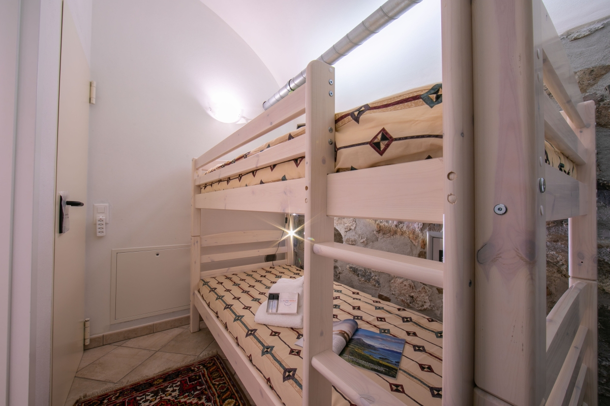 Bedroom 2: The cozy bedroom has a wardrobe and bunk beds suitable for children.
