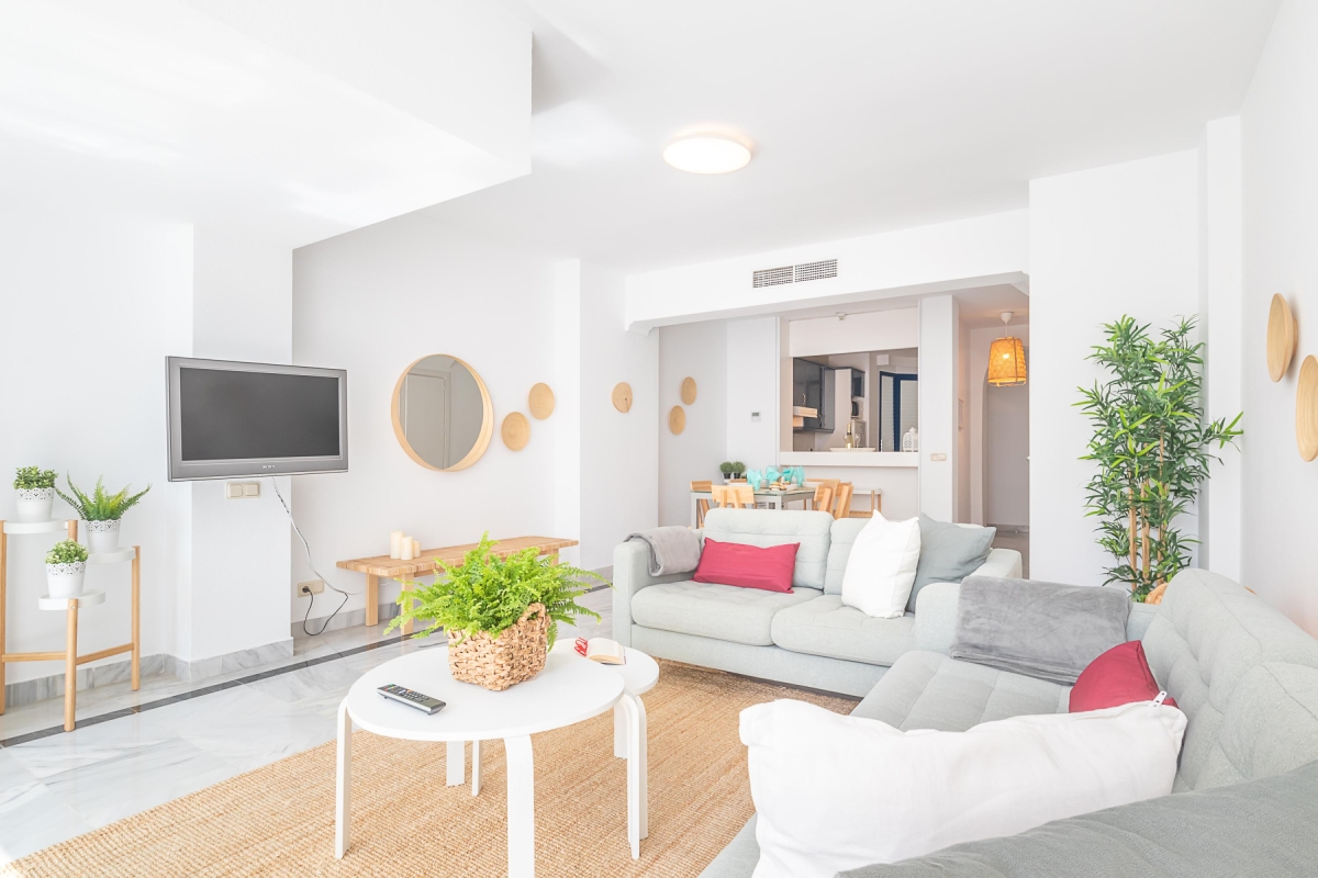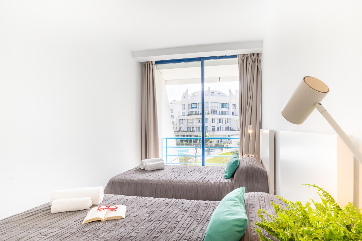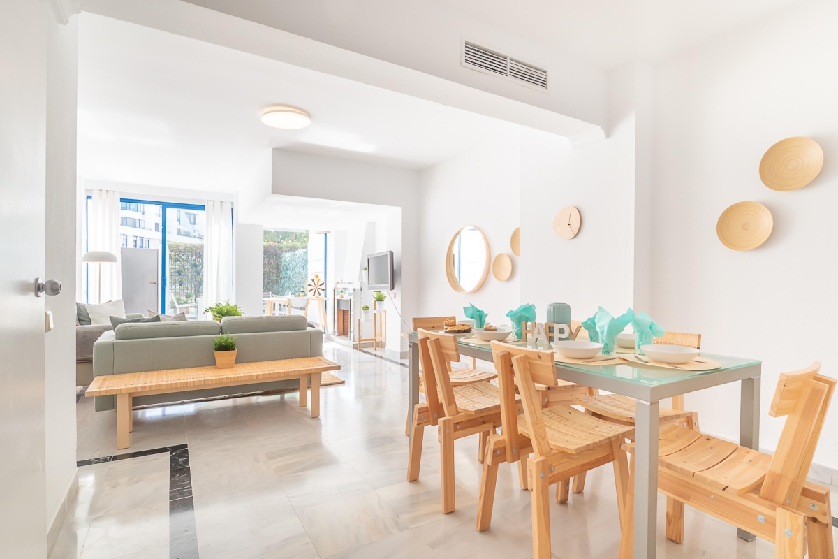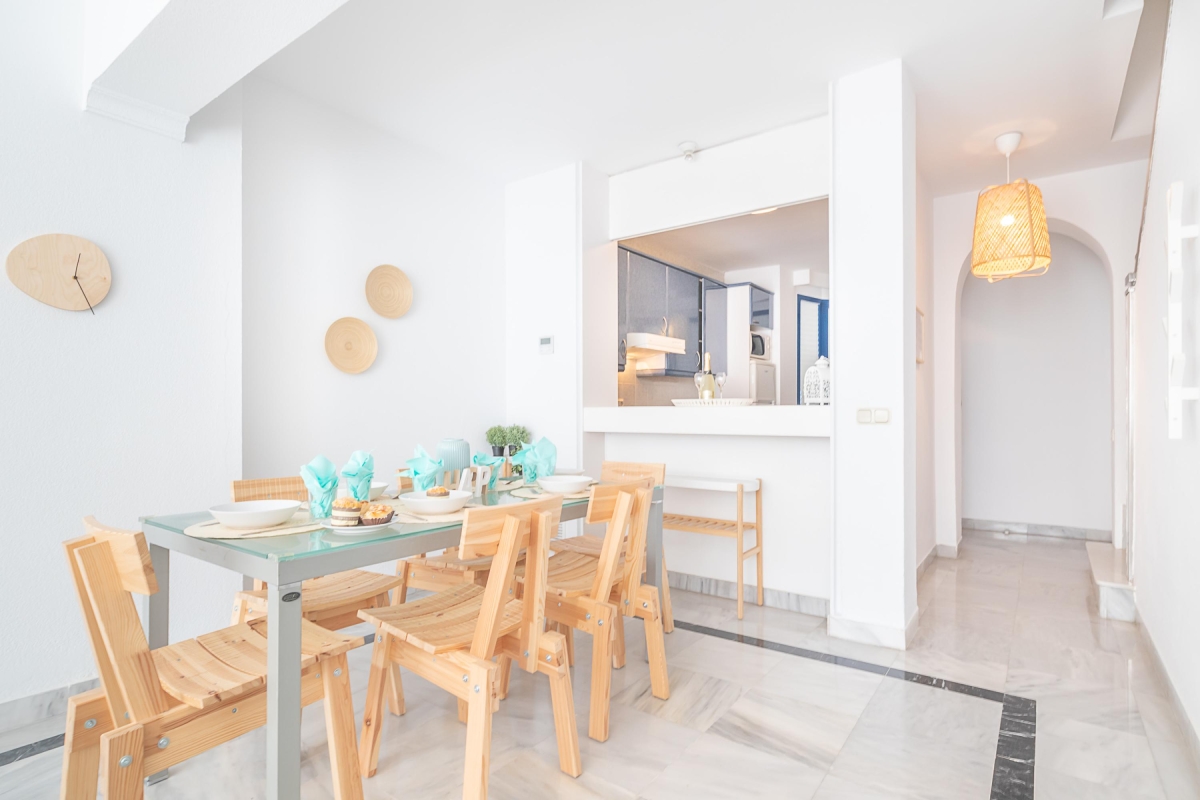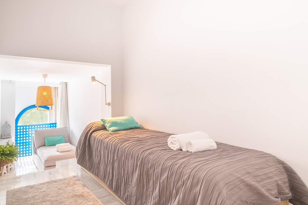 Set in a secure gated complex with a shared pool and garden, this sunny duplex apartment for 5 offers the perfect base to enjoy a variety of vacations. From a family getaway to a staycation and a beach holiday to a romantic vacation, the 3-bedroom rental is an excellent escape on Costa del Sol. The famous beaches, La Fontanilla and Venus, are within easy walking distance, meanwhile, on-site guests have the convenience of soaking up the sun and enjoying open-air dining in a private ambience. For our active vacationers, there is a well-equipped gym and 2 squash courts. Meanwhile, those on a workation will find a laptop-friendly workplace and free Wi-Fi at their disposal here.