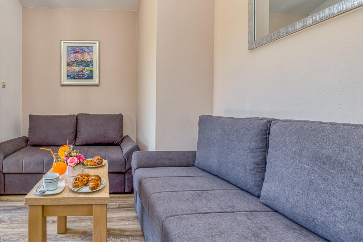 Extra: A double sofa bed and wardrobe are available in the living room.