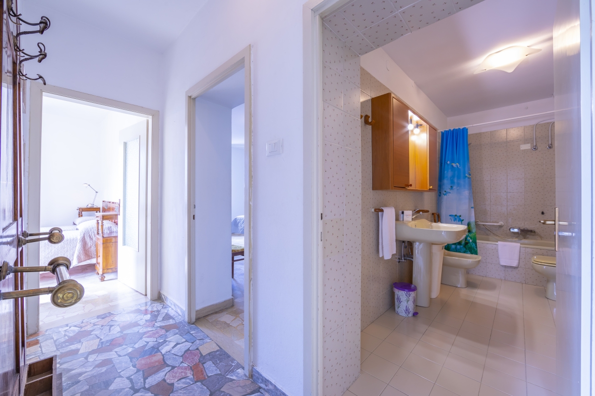 Bathroom 1: The luminous bathroom has a bath with shower, WC and bidet.