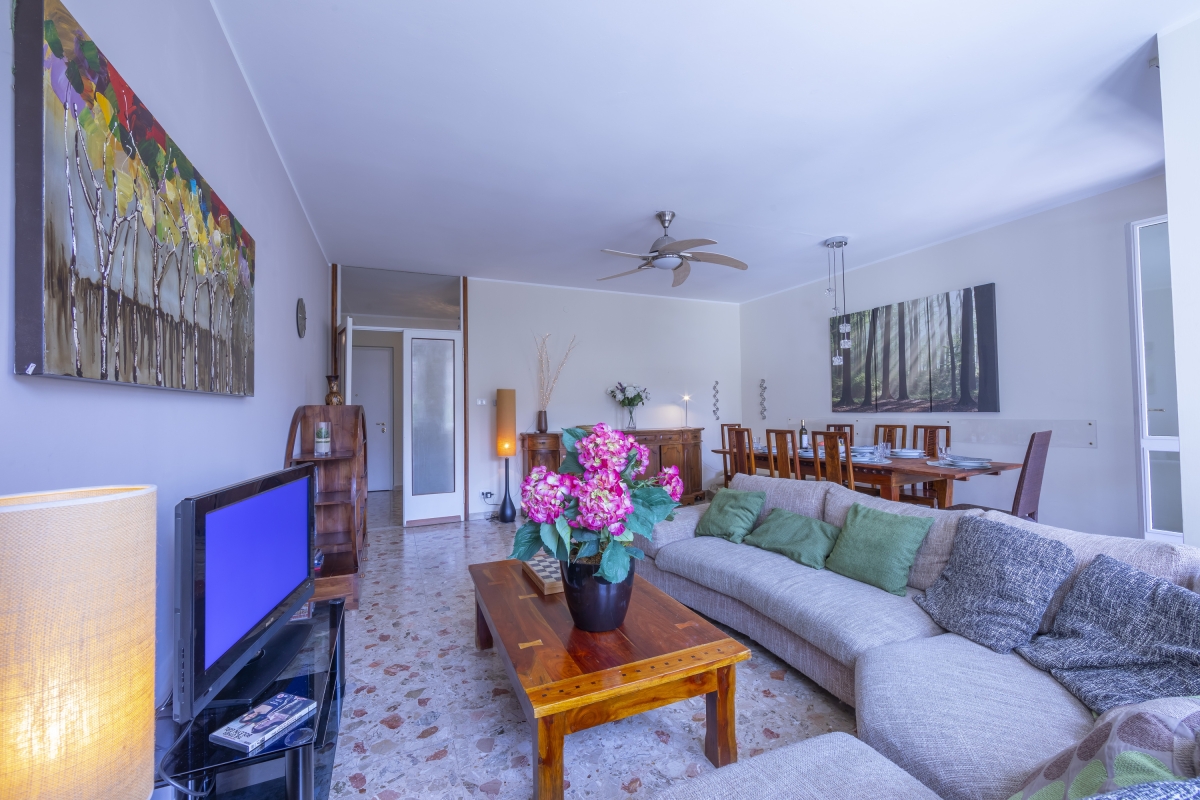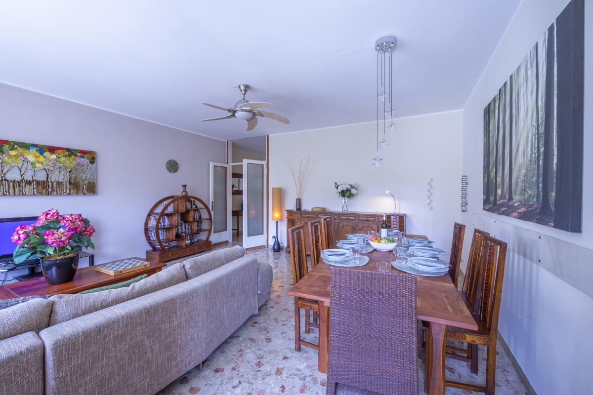 Accommodating up to 8 guests, this 4-bedroom apartment enjoys really roomy interiors and features a large open living room as well as a big terrace with lounging for you to kick back, relax and spend quality time with family or friends. The living room of the apartment is an ideal family space and consists of a large sofa, flat-screen digital TV and a big dining table for everyone to join in and reconnect over food and drinks. Meanwhile, to facilitate carefree meals, the apartment offers a fully-functional kitchen with a dishwasher, toaster, fridge and oven.