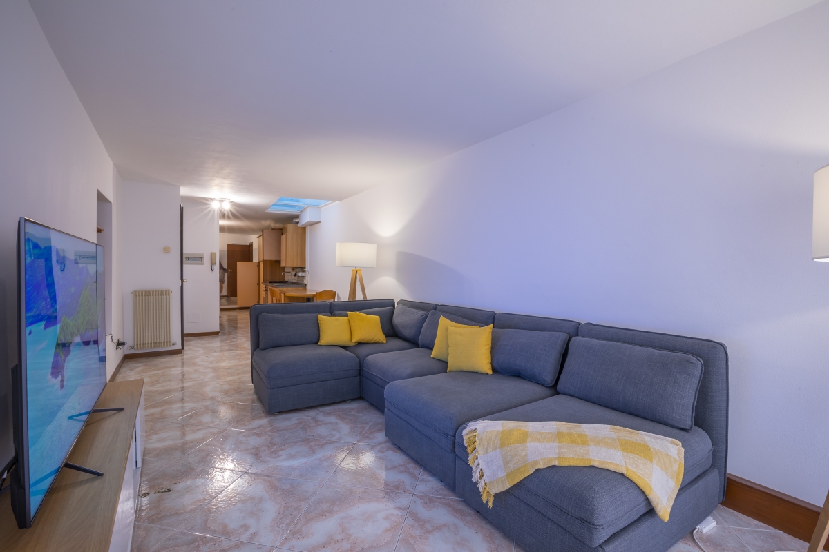 The holiday apartment is a minimalist, light-filled retreat with home-like comforts, modern amenities and a balcony to round up a carefree and satisfying vacation on Lake Garda. The large living room of the apartment is the perfect space to unwind after a day of exploring the town. It has a big and comfy sofa seating with a massive digital TV with Netflix and Disney for leisurely relaxation with family and friends – furry ones included.