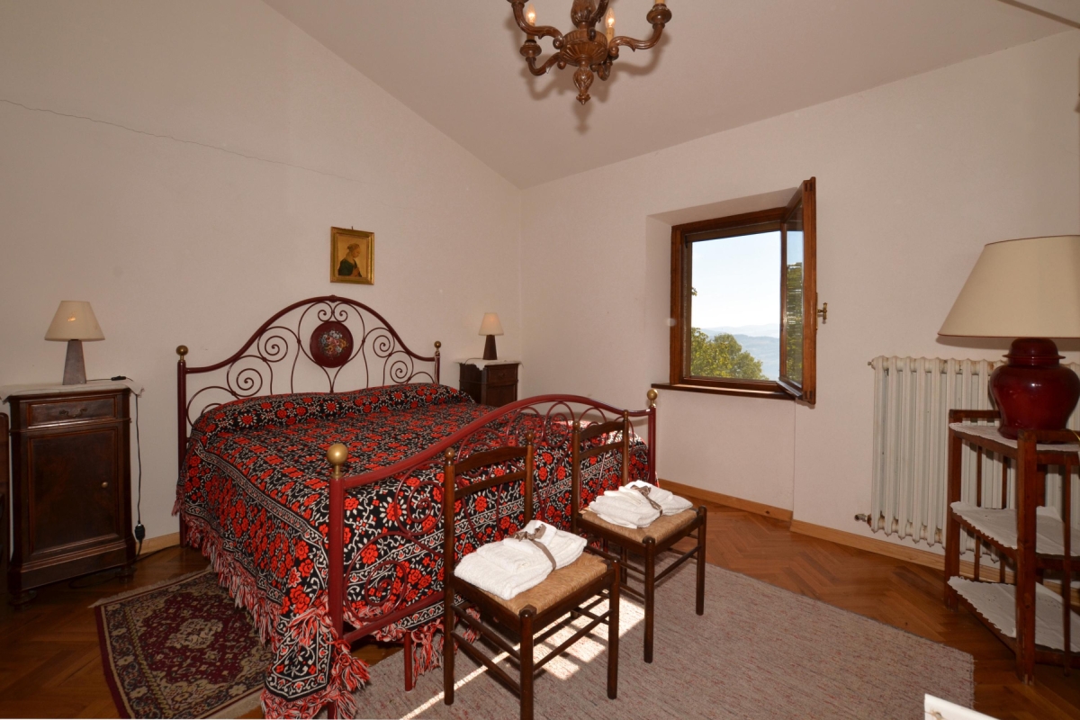 Bedroom 1: A sun-filled room, traditionally furnished with a wrought iron double bed, wardrobe and stunning views out over the valley.